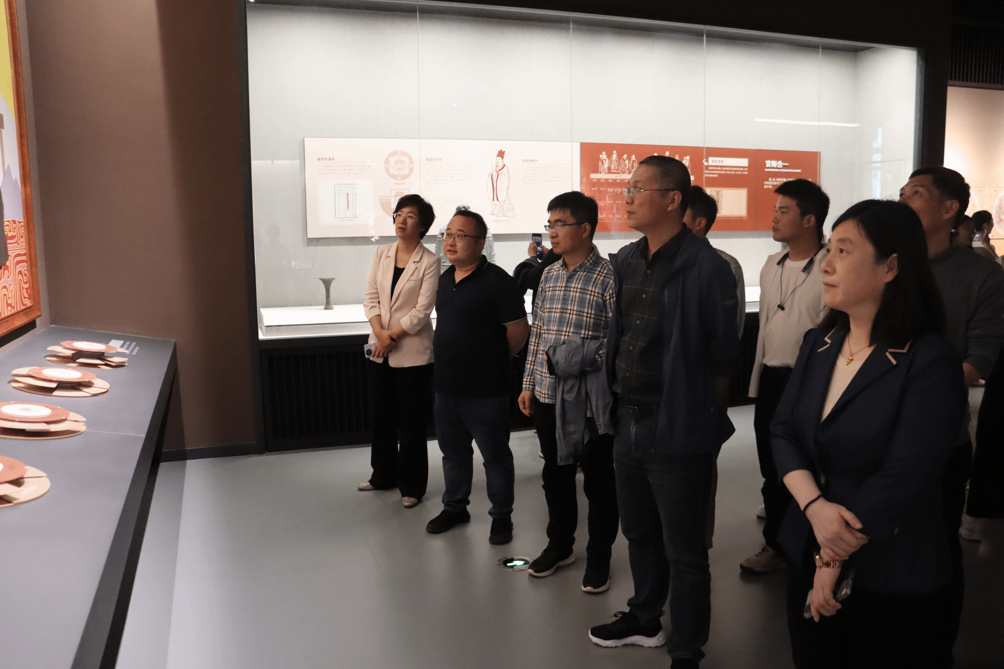 在曲阜师范大学英国365集团座谈中,与会人员就党建工作、专业建设、人才培养、社会服务等方面进行深入学习交流。座谈结束后,大家参观了曲阜师范大学文化长廊建设。
