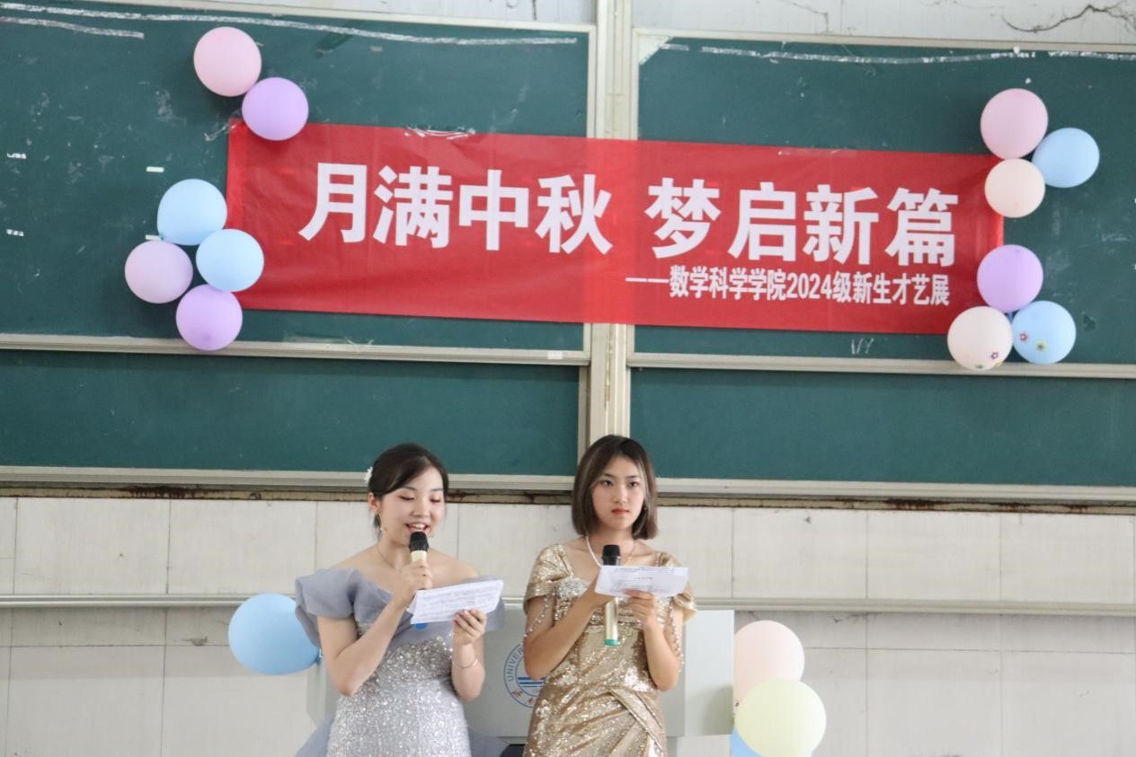随着新生们轮番上阵,尽情展示自己的才艺,整个星硕教室仿佛化身为一个梦幻与才华交织的舞台。除令人陶醉的歌曲外,还有数科2401李美玉、薄尊鑫带来的舞蹈串烧《No tomorrow》和学28-505宿舍的同学们的青海摇,给大家展现了青春活力;数学2404赵荣斌通过精彩的吉他弹唱《杀死那个石家庄人》,展现了音乐的魅力与力量;数学2401马金鲤以武术表演--太极梅花螳螂拳,彰显了中华传统文化的魅力。每一位表演的新生都用自己的方式,诠释着对大学的热爱与对未来的憧憬。