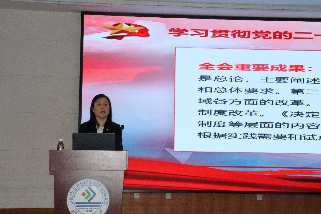 为深入学习贯彻党的二十届三中全会精神,深化理论研究阐释,引导广大师生员工深刻理解、全面把握全会精神,2024年10月22日,英国365集团党委书记崔英静进行学习贯彻党的二十届三中全会精神宣讲,学院全体教职工参加学习。