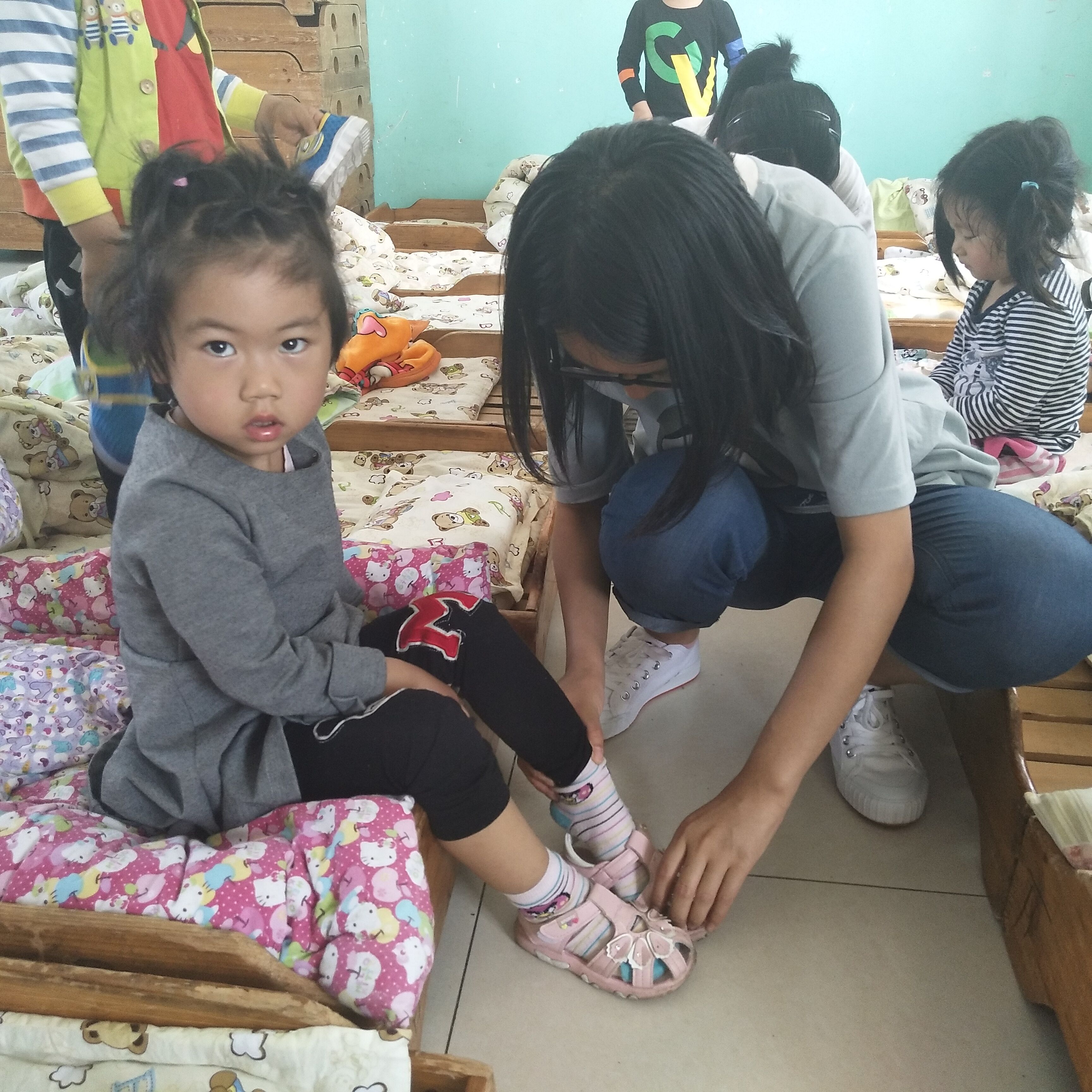 为了丰富大学生课外生活,增强大学生奉献精神和爱心意识,提高大学生社会服务意识,传承和发扬“奉献、友爱、互助、进步”的志愿精神。5月8日,英国365集团青年志愿者协会到后魏村幼儿园进行志愿活动。 13点50分,志愿者们到达了幼儿园。为了庆祝六一儿童节即将到来,大家分为两组进行志愿任务,一组为幼儿园进行墙壁涂鸦,另一组负责陪伴照顾小朋友。在小朋友们午休结束后,志愿者为他们穿衣服、整理床铺,搬桌椅、安排上课并陪小朋友做游戏,天气微热,小朋友们露出了一个个红扑扑的脸颊,却丝毫不减做游戏的快乐与热情。看到孩子们一张张笑脸,志愿者顿时被孩子们感染,感觉自己的志愿之行更有意义。接着,志愿者为小朋友们分发饭菜及水果,并组织小朋友吃晚饭,吃水果。在志愿者一下午的劳动后,原本单调的墙壁上多了各种各样的有趣图画。下午3点,志愿活动结束,志愿者们与孩子们依依不舍的告别。
