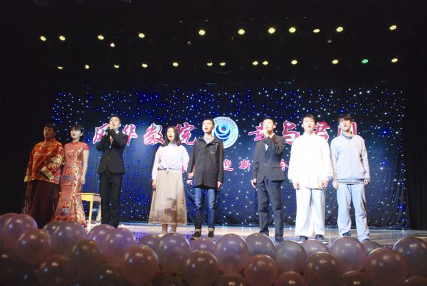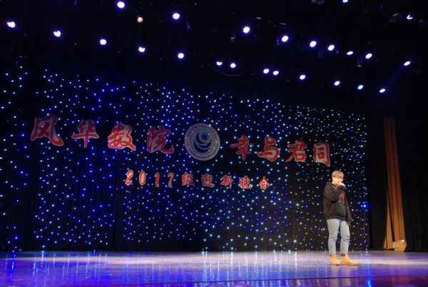 表彰大会过后,晚会在活力四射、热情洋溢的开场舞中正式拉开帷幕。歌曲串烧《留声机》,经典曲目交相辉映,勾起了属于青春一代人的美好回忆;小品《广告双子星》《梁山伯与祝英台之登门提亲》、舞台剧《匆匆那年》,幽默的台词,夸张的表演,逗得台下观众捧腹大笑,掌声不断;创意节目《时光长廊》令人眼前一亮,新颖的表现形式配上灵动的音乐,尽显数院学子的青春活力;街舞表演《take it high》,美轮美奂的舞蹈动作,惟妙惟肖的配音将整台晚会推向高潮。最后,晚会在走秀《民族之韵》中落下帷幕。