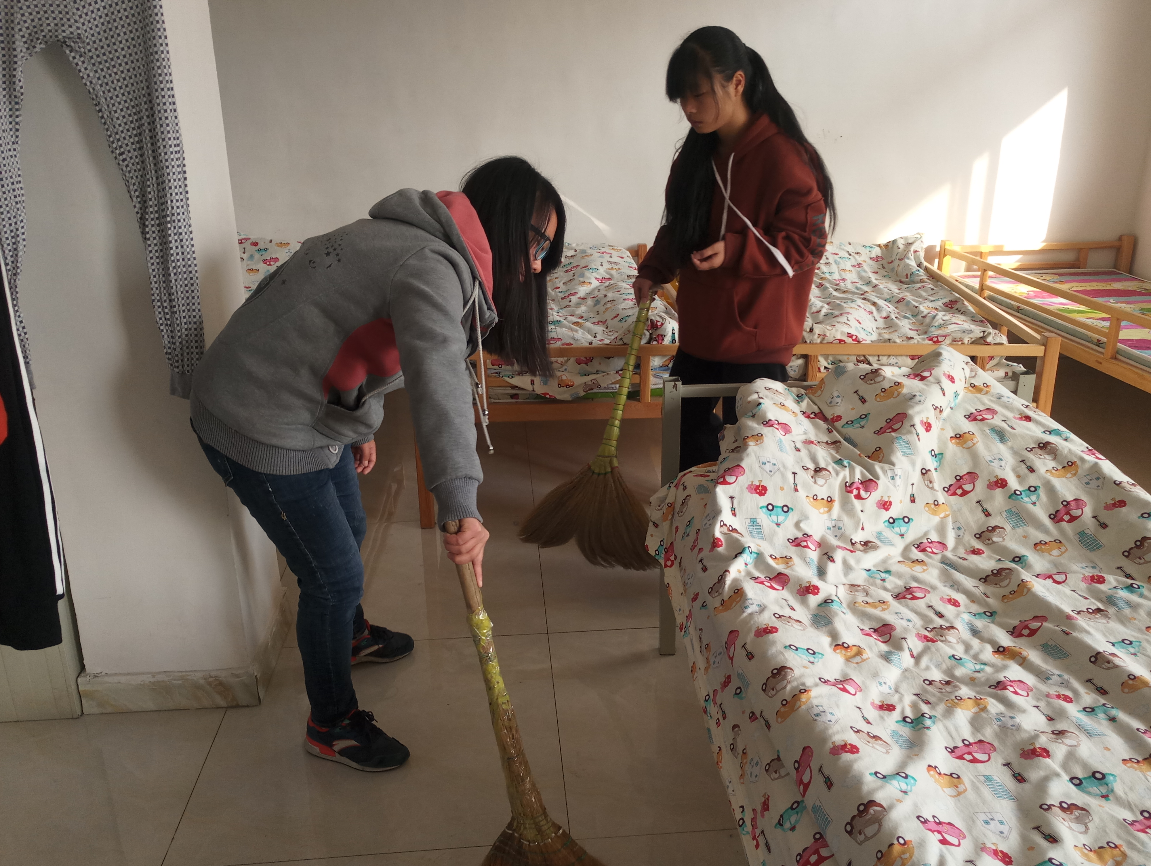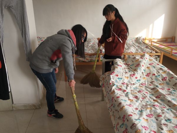下午1:00志愿者们乘坐公交车前往济南天翼儿童特训中心,路途中,三名志愿者讨论了相关的注意事项和孩子们以前的情况。志愿者到达康复中心后,与老师积极交流,了解孩子们的情况,并且积极的做起了义务劳动——打扫三间教室。志愿者们热情高涨,认真打扫房间的每一个物品柜、门窗以及角落。这看似简单,却需要耐力和体力。为了不打扰孩子们的学习,志愿们都放轻了脚步,小心翼翼的打扫卫生。在志愿者的辛勤劳动下,房间变得干净整洁。打扫完卫生,志愿们又同老师聊了会天,认真听取了老师的建议。志愿服务活动结束后,志愿者们与老师告别,离开了康复中心。