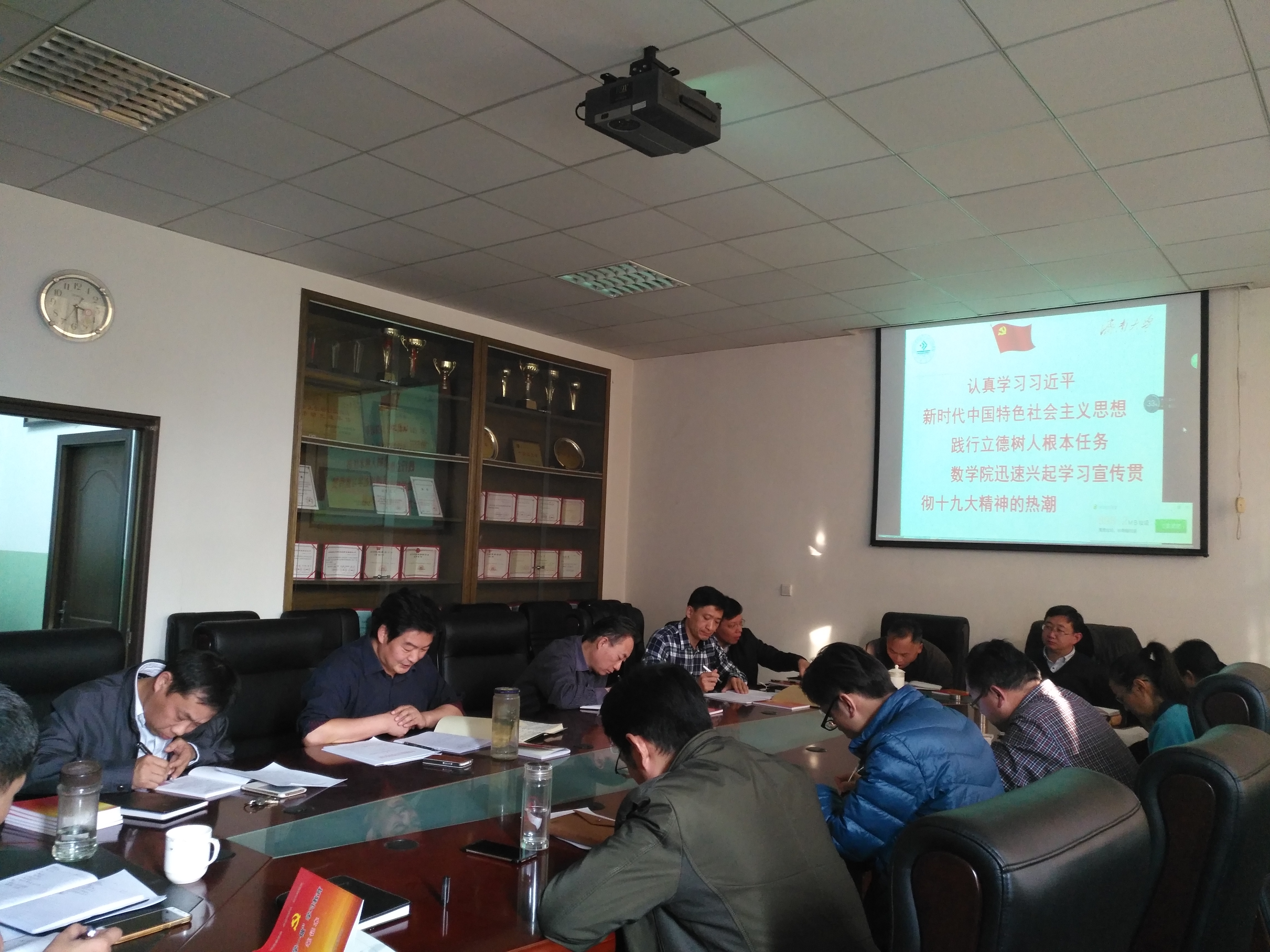 根据学校要求,数学院党委认真开展了“师生热议十九大”宣传活动,开展了学习焦裕禄事迹先进教育活动,组织多层次、多场次、多形式学习习近平新时代中国特色社会主义思想,并以此为统领, 认真扎实做好学院的立德树人工作。