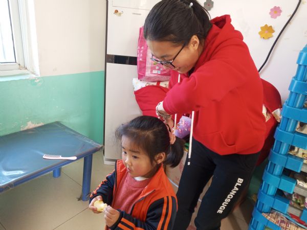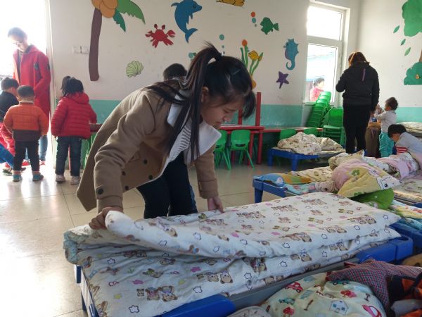 志愿者到达幼儿园后,进行了简单的分工:每人负责一个班级。等到小朋友起床后,志愿者先帮助小朋友们穿衣服和鞋子,这不仅能使小朋友的外表更加整洁,而且让他们的心情更加愉悦。然后,志愿者协助老师叠被子和整理床具,为小朋友营造了干净整齐的学习娱乐环境。随后,志愿者们还协助老师给小朋友们分发水杯和水果,组织小朋友喝水吃水果。活动最后,志愿者们和小朋友一起做了“小花猫捉小老鼠”的游戏。这不仅拉近了志愿者和小朋友之间的距离,而且让本次志愿者活动更加丰富多彩。