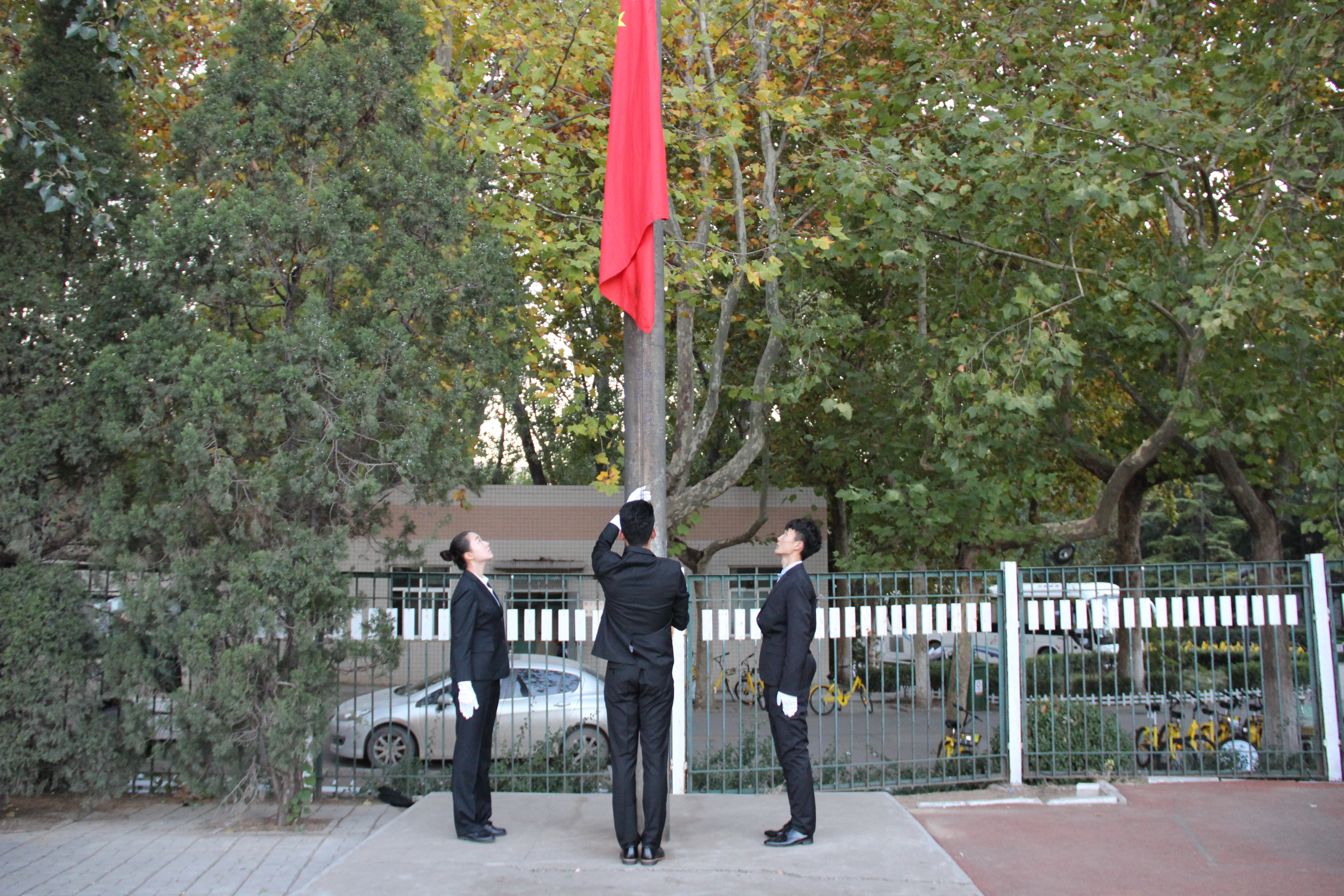 为了培养大一新生的仪式感,增强勇于担当的责任感,培育其爱国情怀,10月30日早7点,英国365集团在西校区北苑大操场举行了升旗仪式,参加此次升旗仪式的有17级新生辅导员吴立军及全院新生。此次升旗仪式由付相达和顾一凡主持。