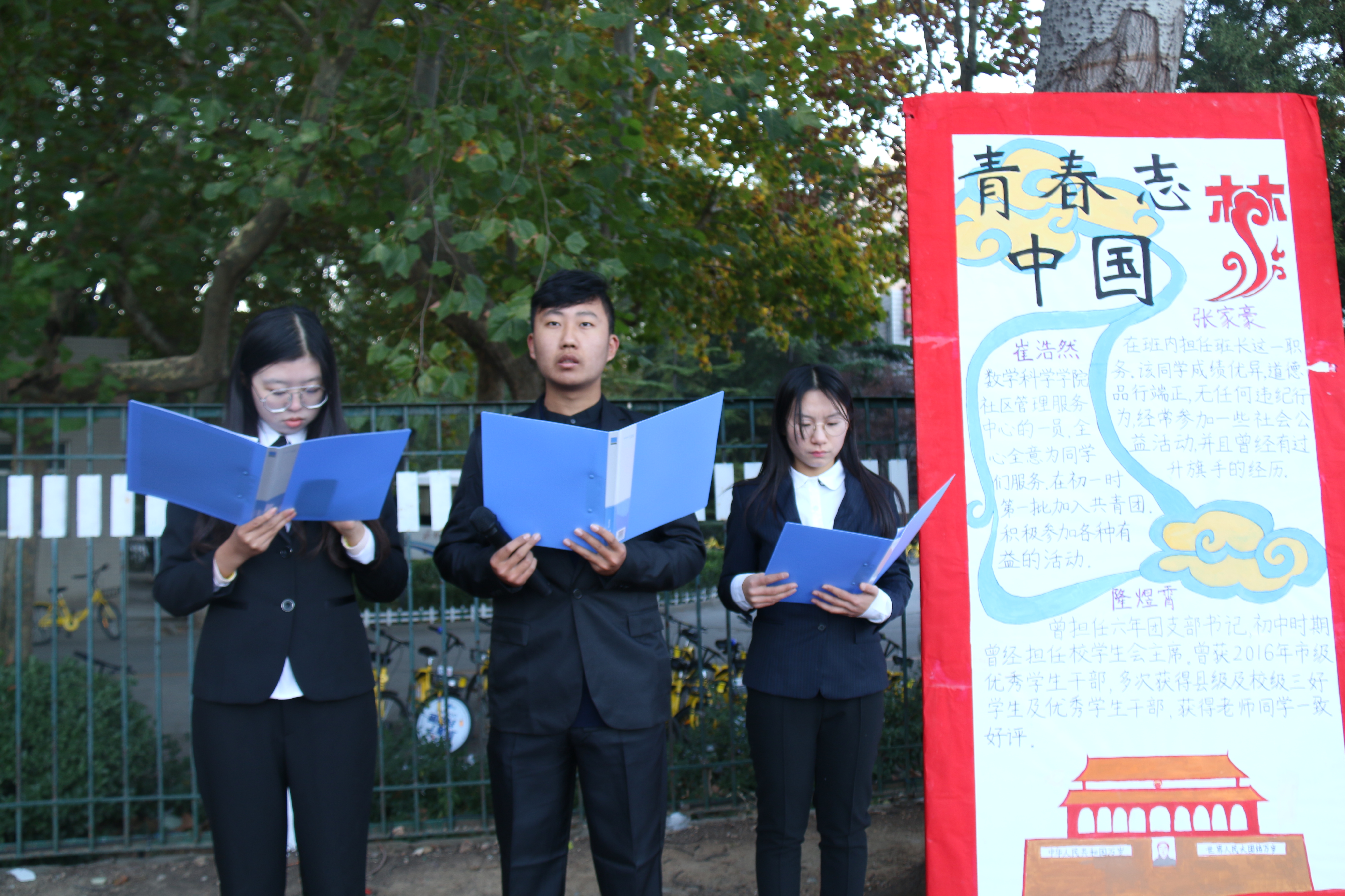 早6:30,全体人员集合完毕,准备迎接着这一神圣而庄严的时刻。升旗仪式开始前,队列严肃整齐。随着主持人宣布升旗仪式正式开始,国旗班迈着坚实而又整齐的步伐出旗。国歌奏响,国旗手将国旗抛起,同时全体人员奏唱国歌、行注目礼,国旗冉冉升起。随后,新生代表毛慧臻以“青春志,中国梦”为主题发言,呼吁新生们在全面建成小康社会之际,广大青年要坚定理想,志存高远,继承和发扬“五四”精神,以饱满的热情,昂扬的斗志,谱写更加出彩的人生篇章。紧接,新生辅导员吴立军发言,教诲学生要有仪式感和爱国情怀,在十九大圆满结束之际,同学们一定不能少了仪式感和爱国情怀。吴立军老师也很关心同学们的生活,提醒同学们注意保暖,不要生病,以免耽误学业。