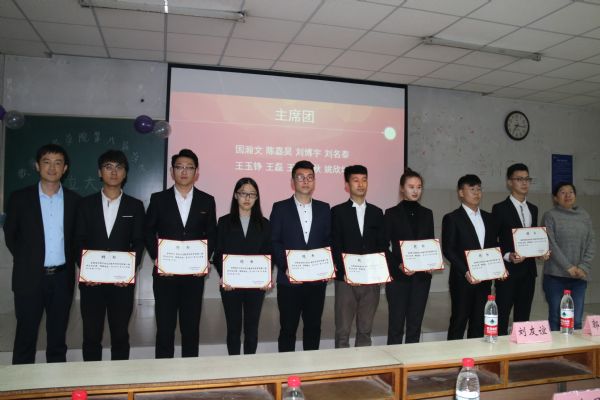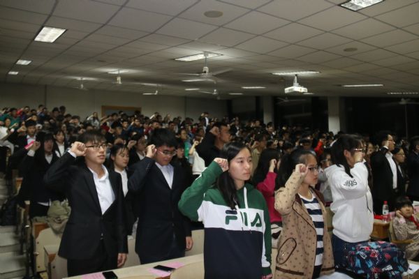 大会在主持人致开幕词、介绍嘉宾后拉开帷幕。团委书记刘友谊老师首先对新一届学生会成立表示祝贺,同时也对学生会各位成员表达了美好希冀。对于新成立的学生会,刘书记提出,每位学生会成员都要培养“服务”与“创新”等思想,学生会中每位成员都要正确认识自己的责任,树立大局意识,尽职尽责,共同打造“精品学生会”。随后,主持人宣布学生会新成员名单,由郭桂芬老师向第八届主席团及各部长颁发聘书。学生会代表尹欣恬带领全体成员庄严宣誓,铿锵有力的誓词展现了新一届学生会朝气蓬勃的精神面貌。会上,学生会主席国瀚文也结合自身工作经验谈了自己对学生会工作的看法,他希望新加入学生会的学生干部一定要做到三点,那就是“服务他人”“不言放弃”“团结友爱”。最后,各个部门合照留念,大会在全体成员的掌声中圆满结束。