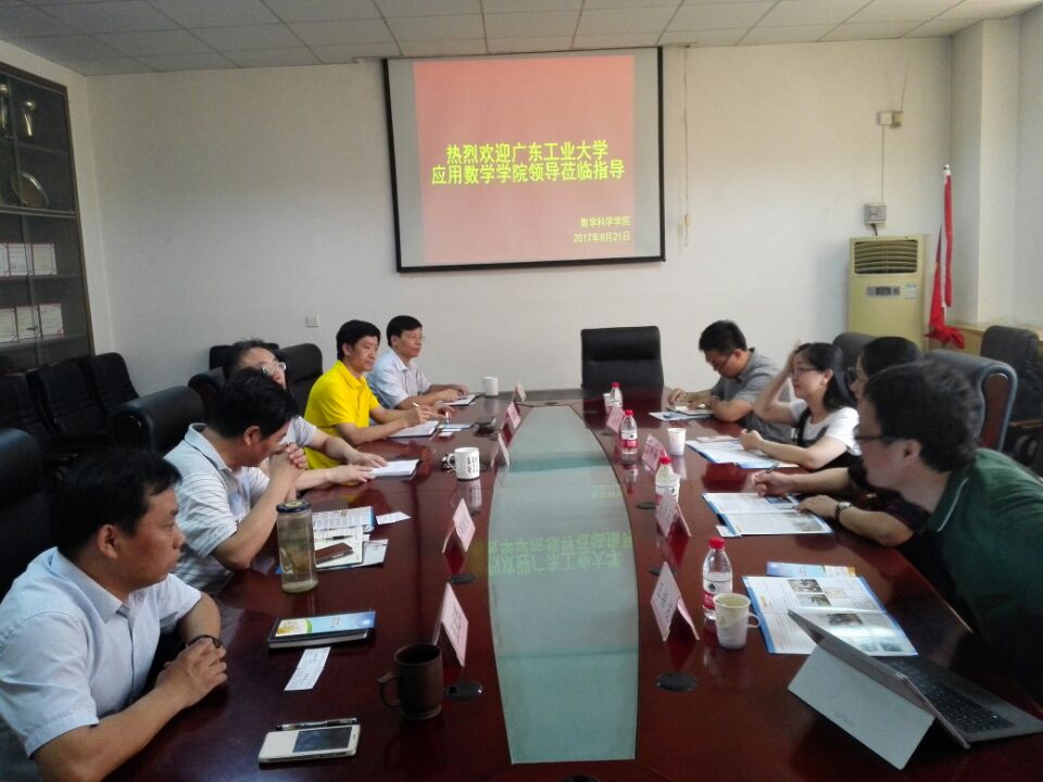 9月21日,广东工业大学应用数学学院党委书记林伟英,副院长卫雪梅、王振友,办公室主任宋昆桓一行四人到我院进行工作交流。学院全体领导和信息计算科学系主任靳绍礼参加座谈。