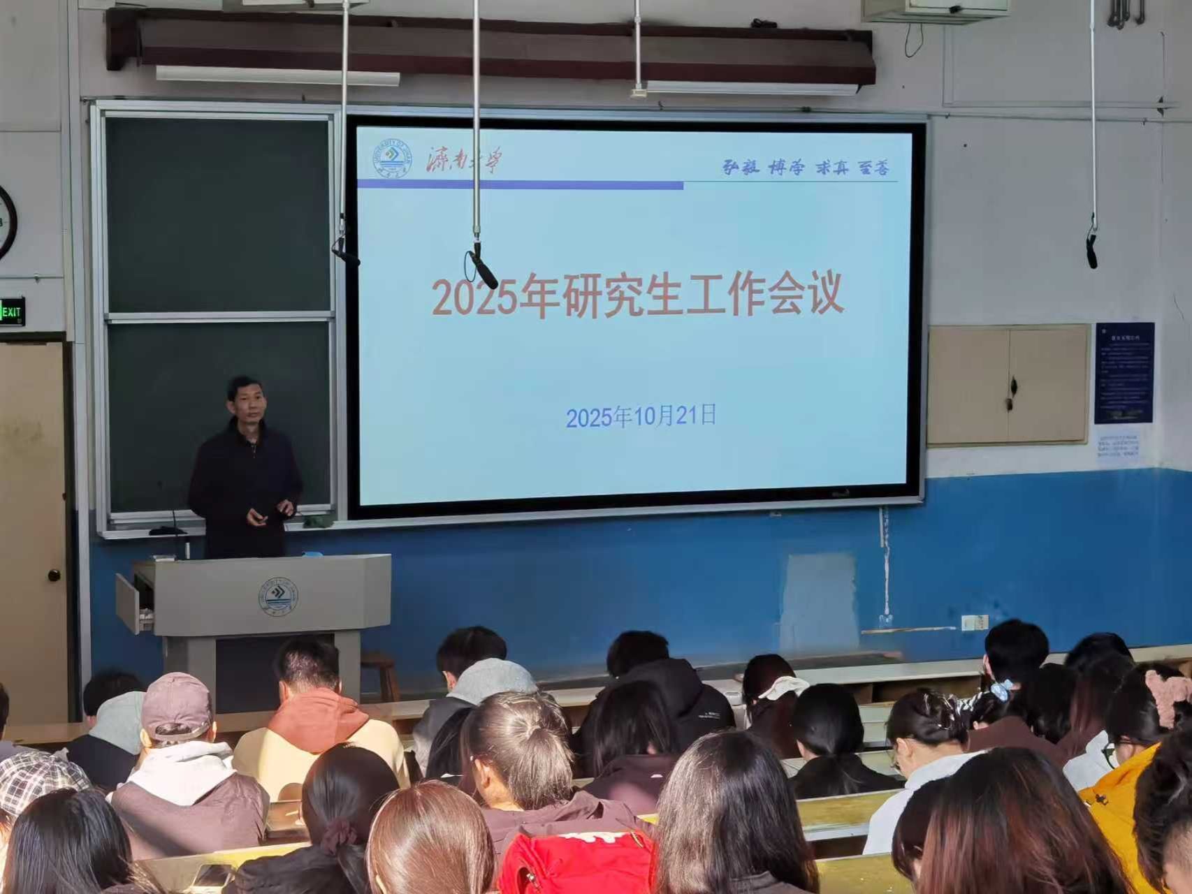 靳绍礼副院长首先通报了2025届研究生就业情况,结合当前就业形势,为研究生就业提供了有针对性的指导建议;随后介绍了学生参与科创竞赛的基本情况,鼓励大家积极参赛,以赛促学、以赛促练;最后,他着重强调了科研诚信的重要性,通报了近期研究生学位论文抽检结果,并对学位授予创新成果的审核标准进行详细解读。研究生辅导员沈云柱就请假制度与安全注意事项作了重点说明。