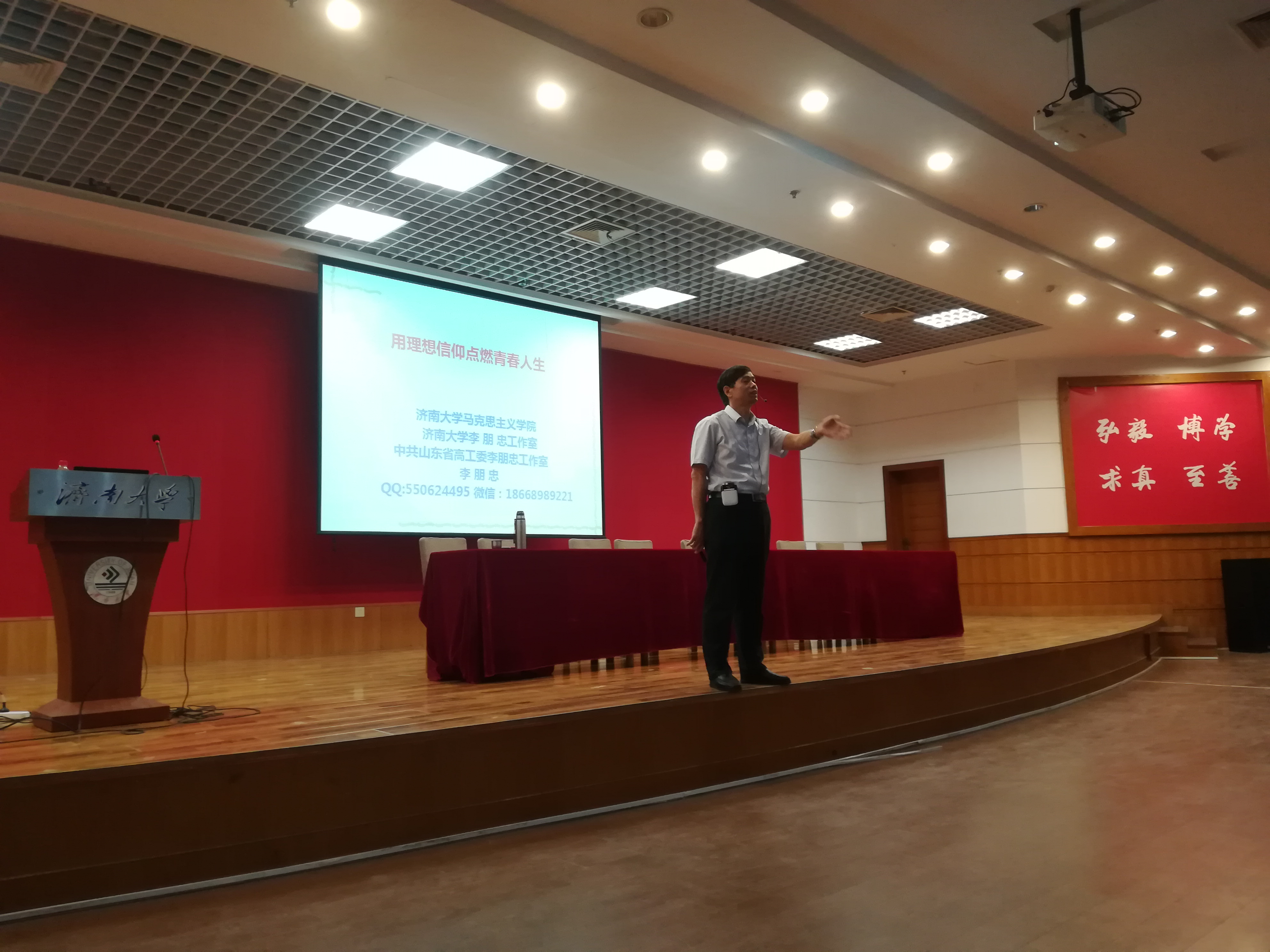 9月14日下午,应英国365集团邀请,山东省高校十大师德标兵、马克思主义学院李朋忠教授为2017级学生作了“用理想信念点燃青春人生”的专题报告。我院2017级332名本科生在学校第二报告厅聆听了报告,会议由英国365集团党委副书记、副院长孟德洋主持。
