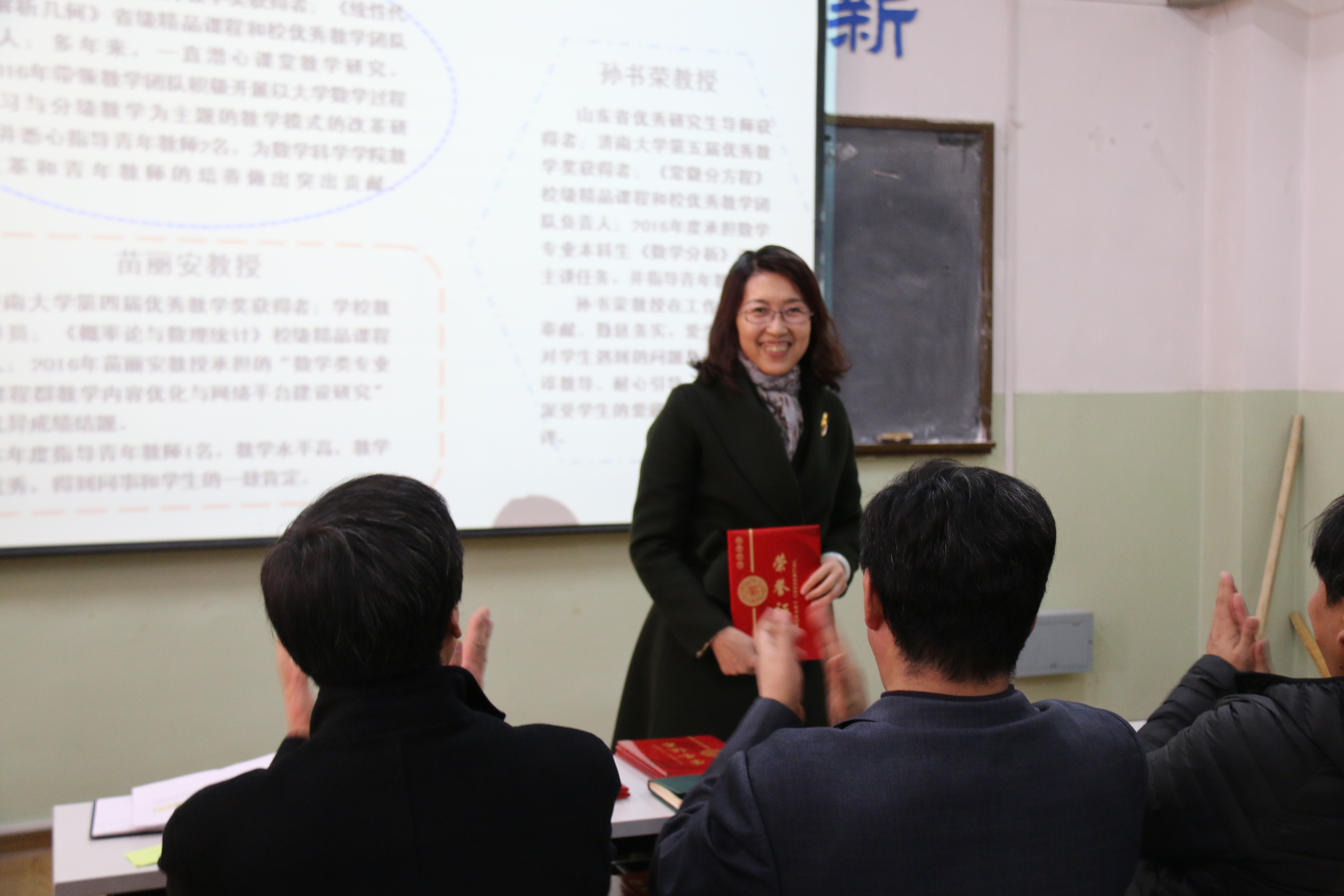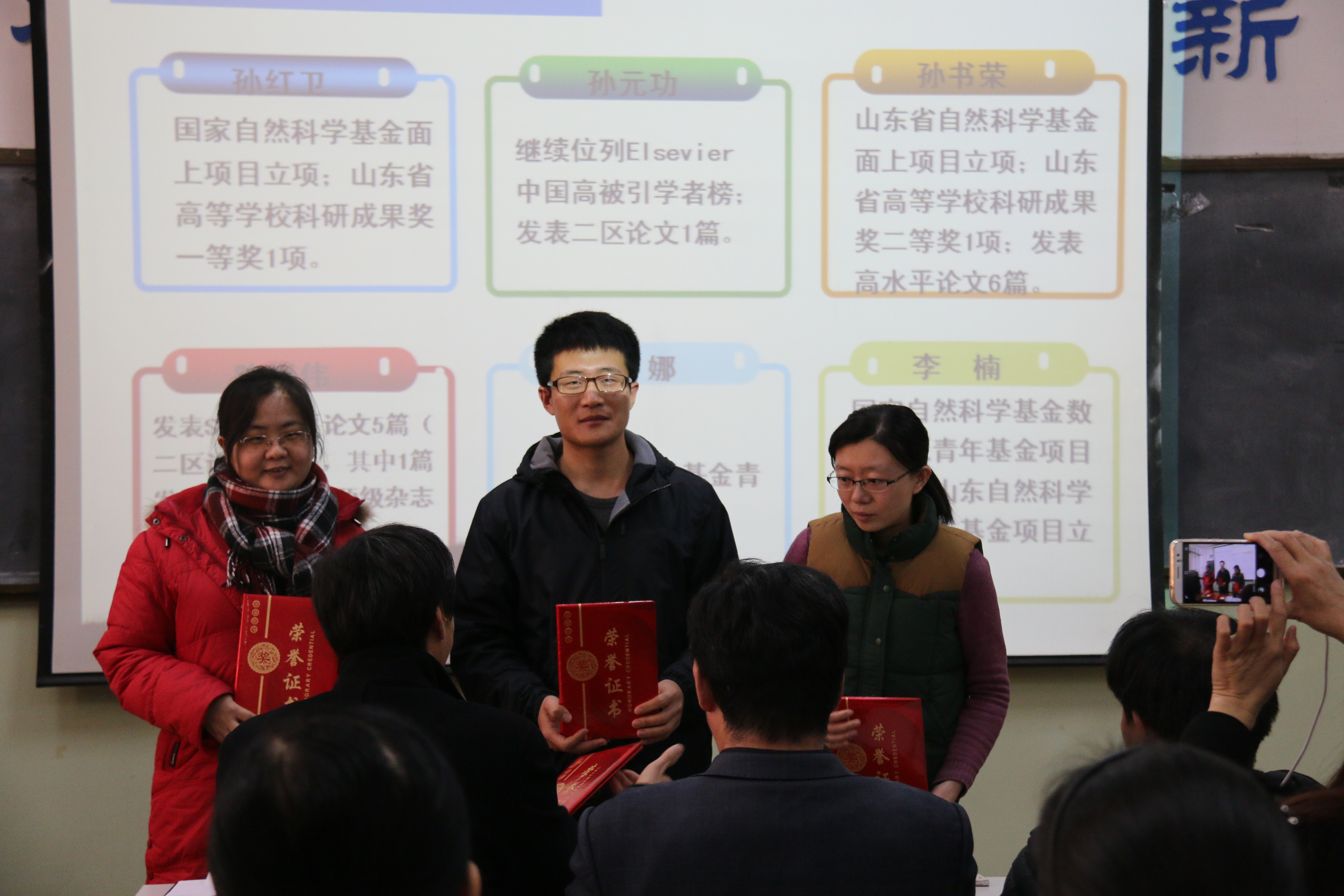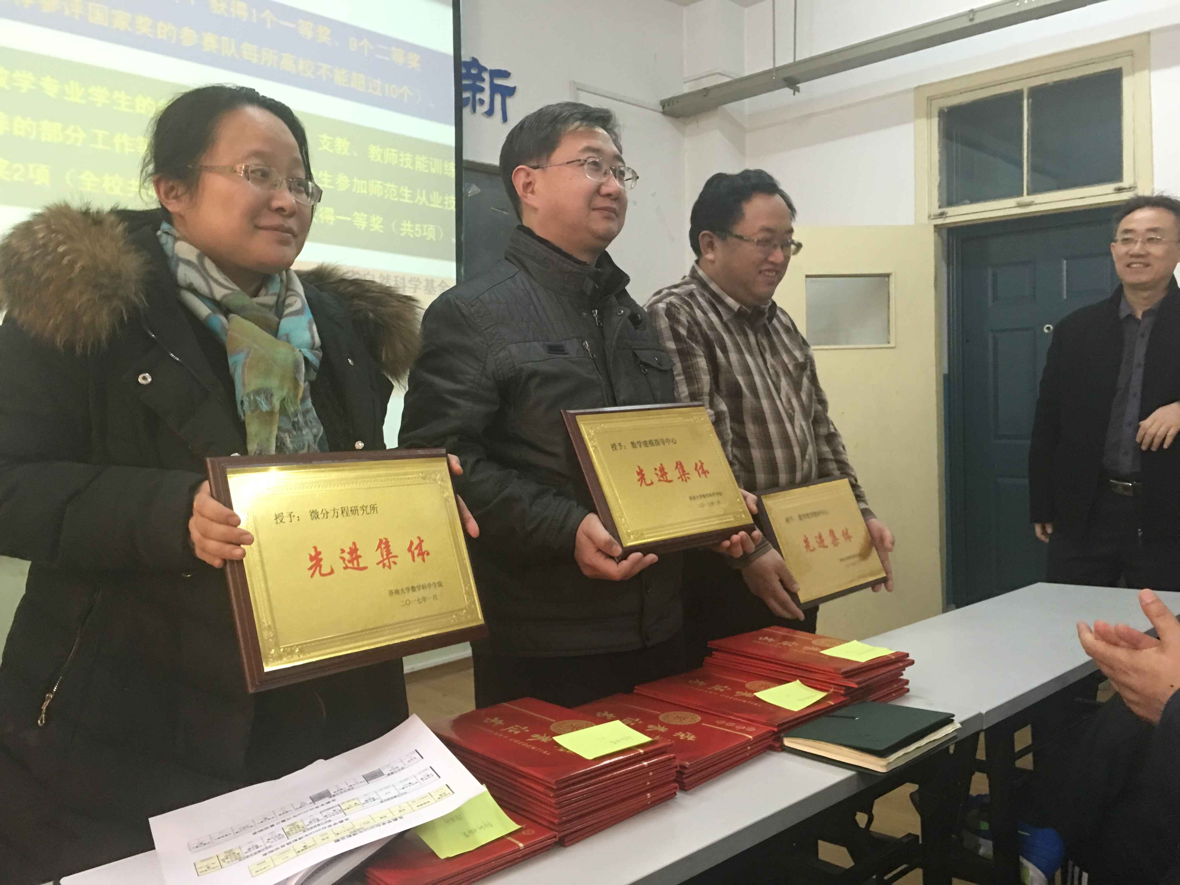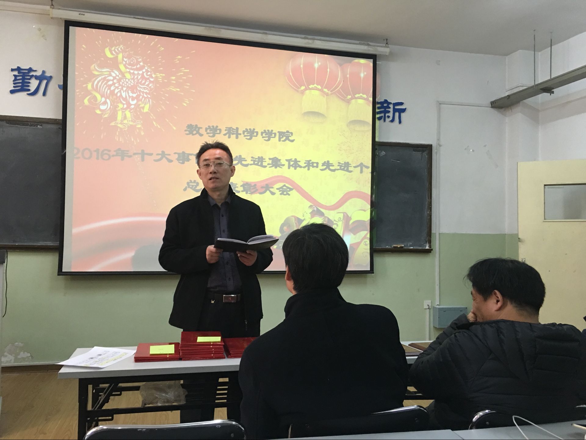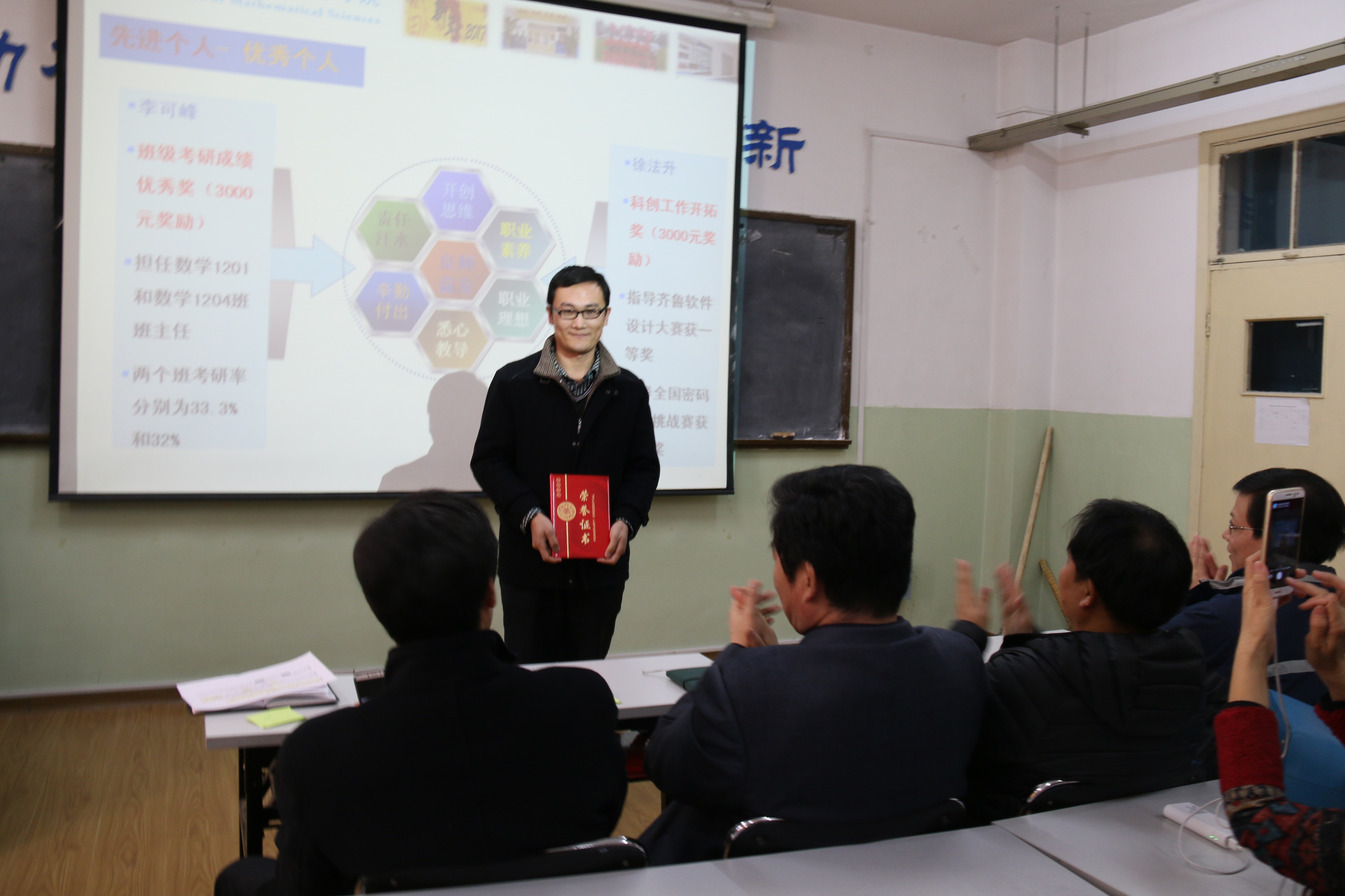 会上,公布了学院2016年十大事件;表彰了数学建模指导中心、数学教育教研中心、微分方程研究所等先进集体;表彰了优秀英国365者孙红卫、孙元功、孙书荣、陈观伟、张娜、李楠;表彰了优秀教学工作者张苏梅、苗丽安、孙书荣、吴鸿华、王洪凯、宋玉成;表彰了评教优秀的前六名教师吕洪波、祁晓光、张培龙、马 超、吴兆荣、赵 燕;表彰并奖励了班级考研成绩优秀奖的李可峰;表彰并奖励了科创工作开拓奖的徐法升;表彰并奖励了工会活动积极分子马巧灵、刘友谊、赵华磊。
