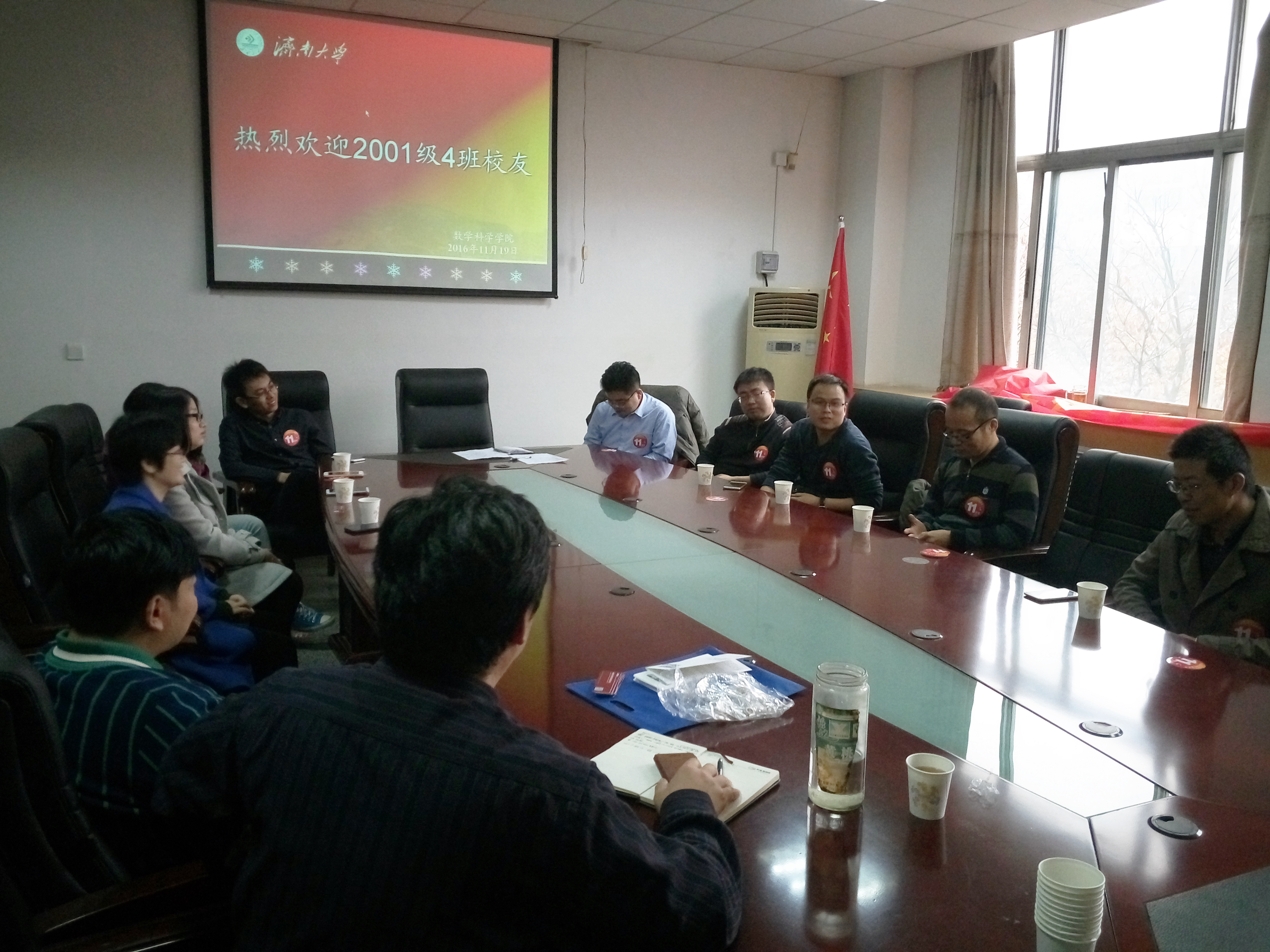 11月19日,数学英国365集团2001级信息计算科学专业4班校友重返母校,毕业11年后相聚英国365集团院。数学院党委书记韩振来,化学院党委书记刘金国,数学院副书记、副院长孟德洋,原班主任、辅导员孙红卫、李蘋等老师参加会谈。