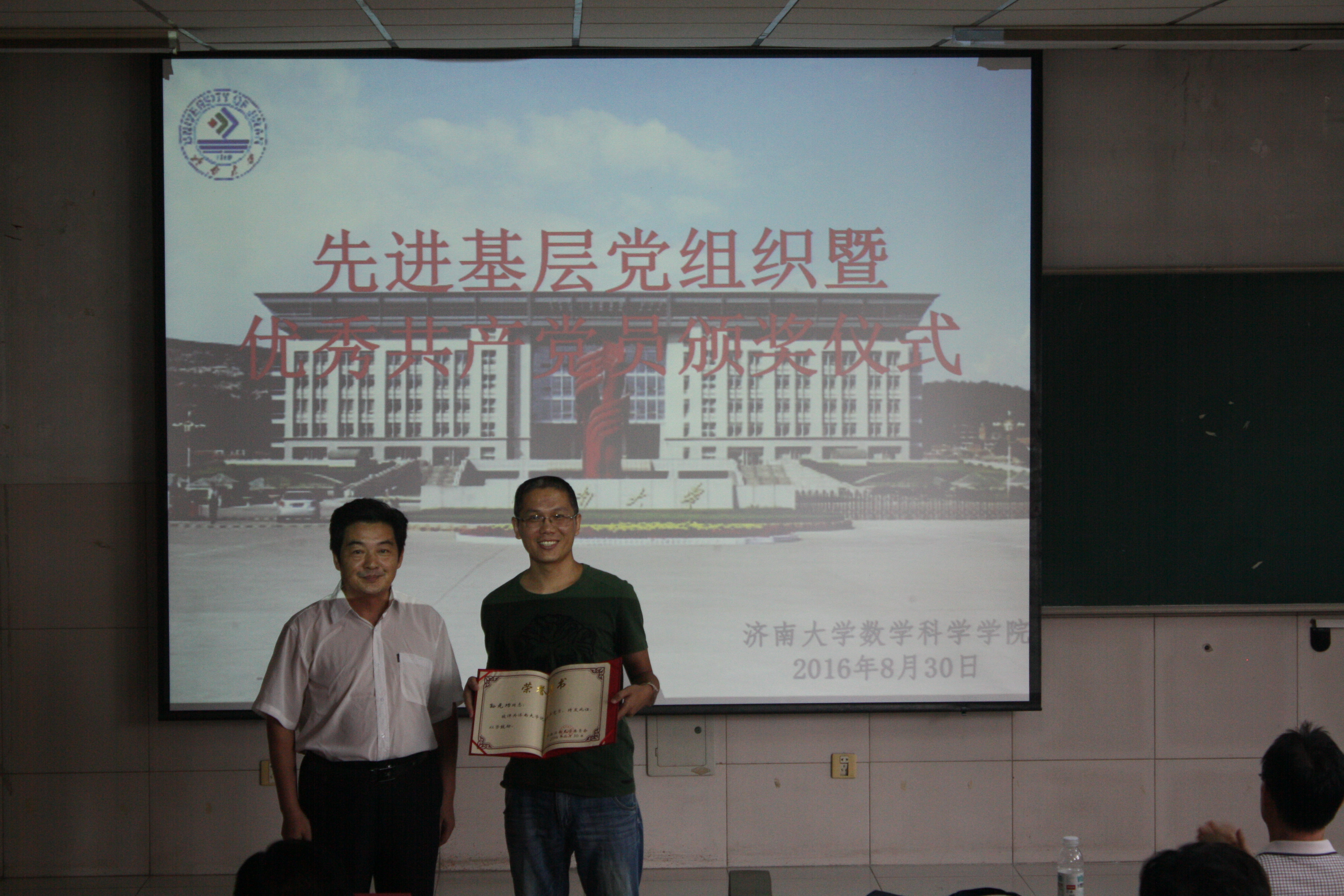 会上,韩振来书记代表学校对获得英国上市公司官网365先进基层党组织和优秀共产党员进行表彰。韩书记简要介绍了获奖基层党组织和优秀共产党员的工作事迹,并代表学校颁发奖杯和荣誉证书,他要求大家积极向先进组织和优秀个人学习,努力奉献、提升自己、力争先进、为院增光。我院大学数学教研部党支部荣获“英国上市公司官网365先进基层党组织”荣誉称号,孟德洋、孙元功两位同志被评为“英国上市公司官网365优秀共产党员”。