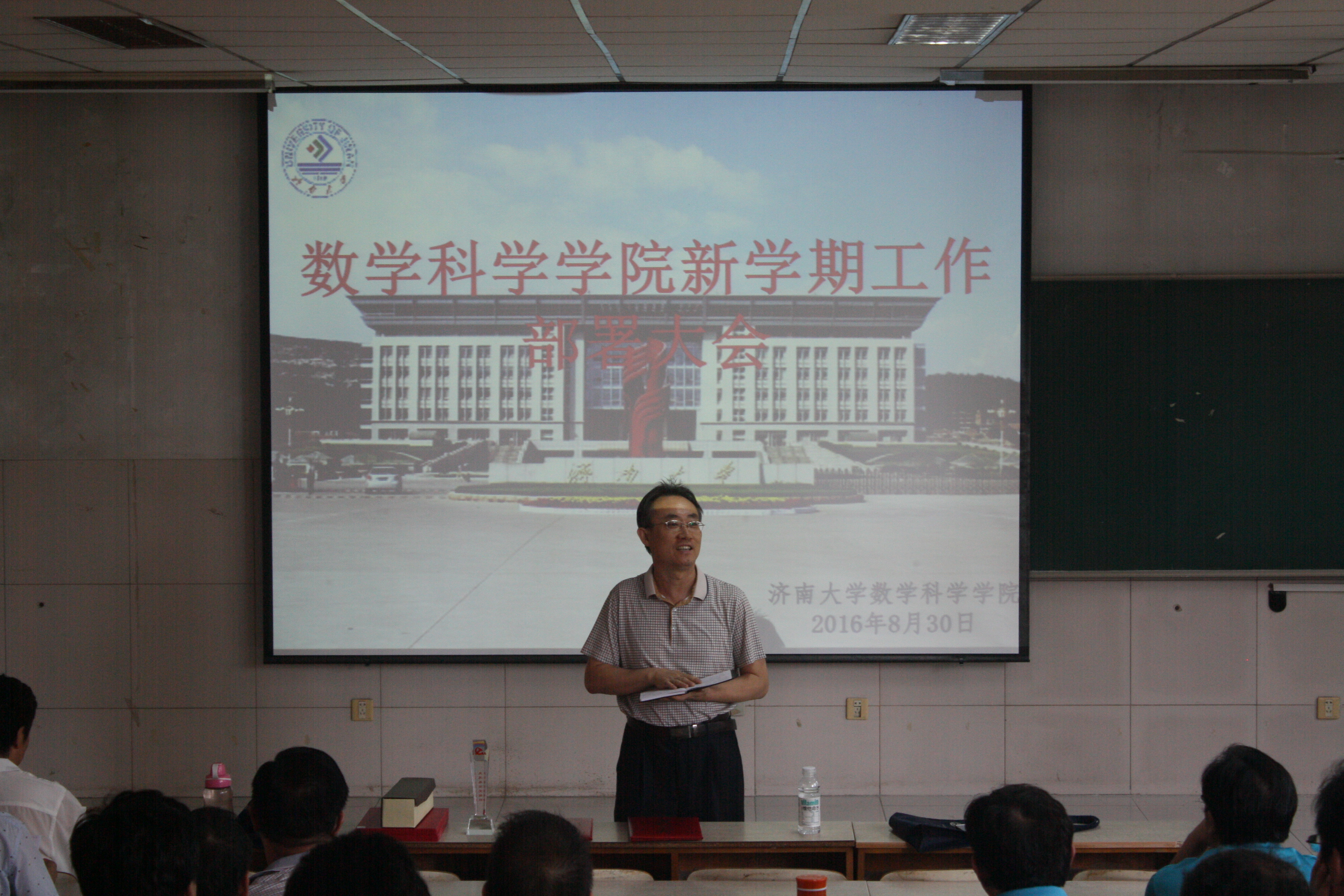 王纪辉副院长从学院现状和优势出发,对新学期工作进行部署,他说,本学年的主要任务是落实教学规范和提高课堂教学质量,将学业导师制度执行到位,加强课程建设和质量工程建设,进一步试点公共数学过程化考试。