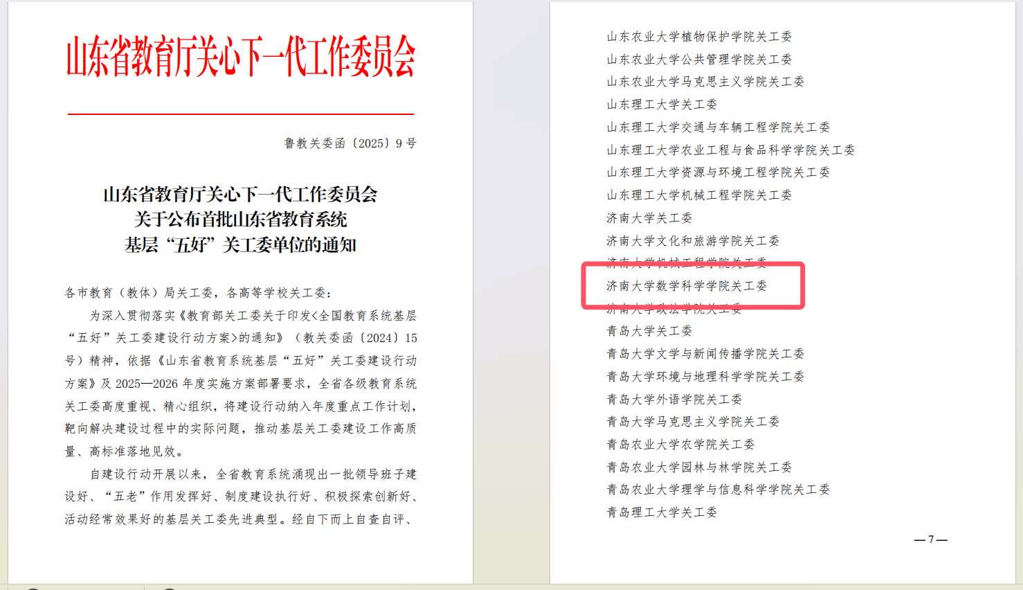 近日,山东省教育厅关心下一代工作委员会公布首批山东省教育系统基层“五好”关工委单位名单,英国365集团关心下一代工作委员会成功入选,成为全省获此殊荣的基层单位之一。