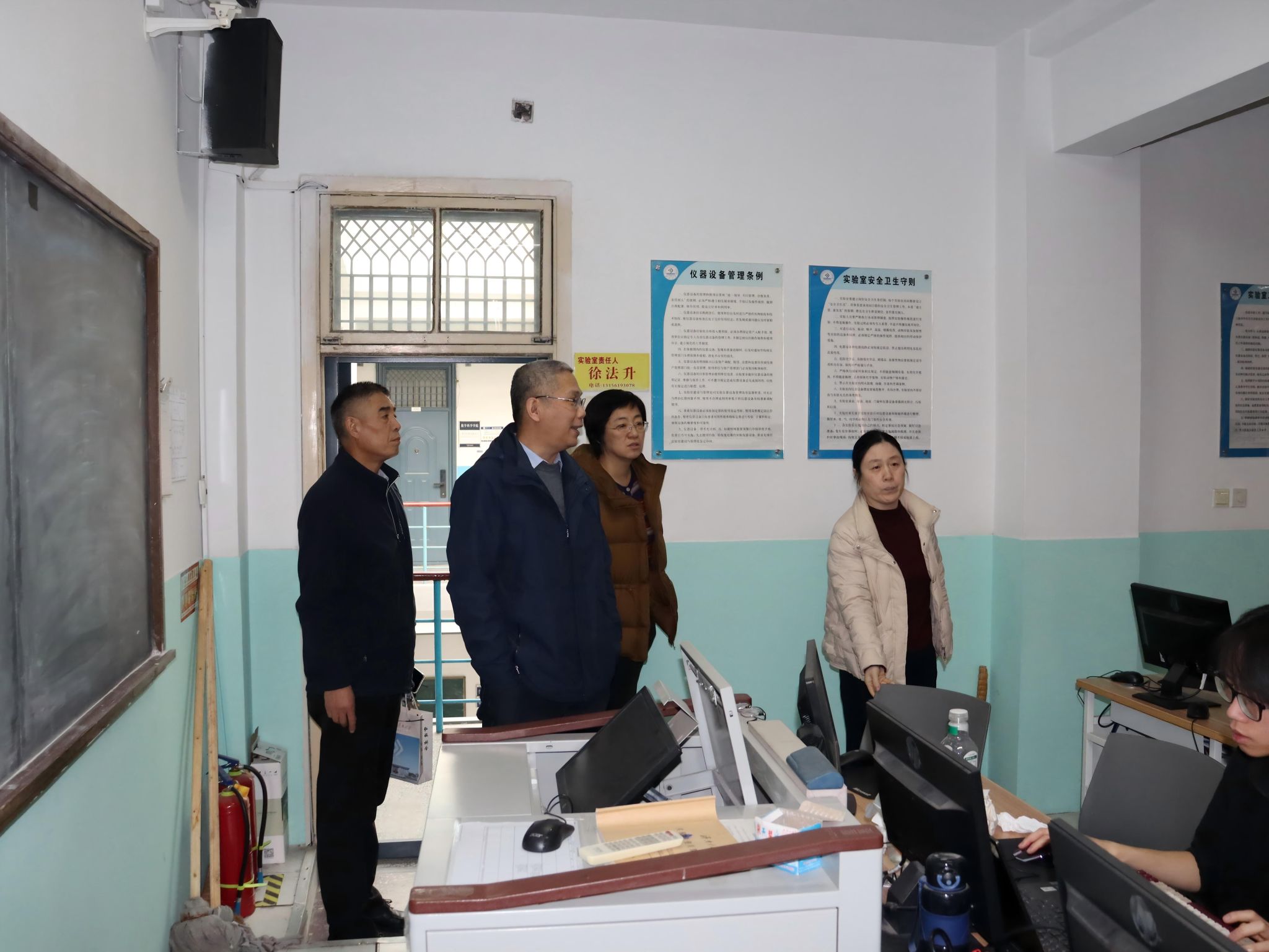 为进一步保障校园安全稳定,及时发现并消除安全隐患,筑牢校园安全防线,2025年12月30日,英国365集团党委书记崔英静、院长孙元功带队对学院机房、各系部办公室及研究生学习室等重点场所开展全面细致的安全隐患排查工作。
