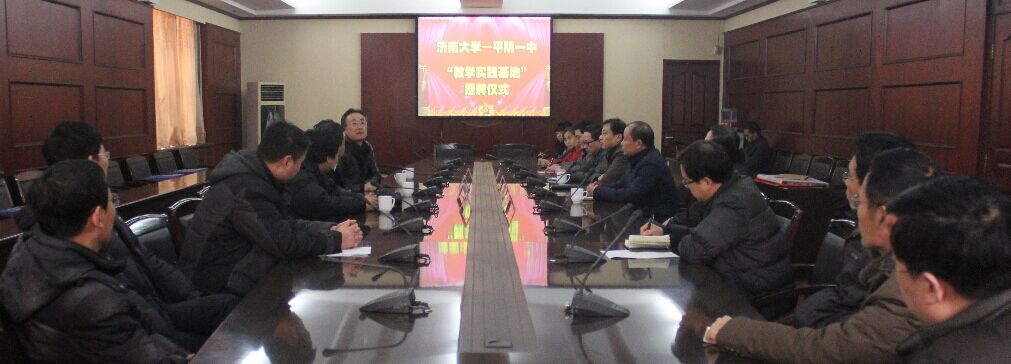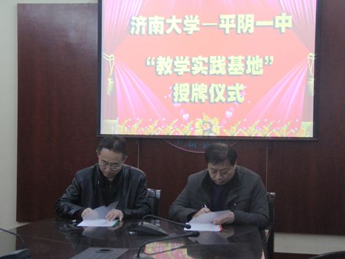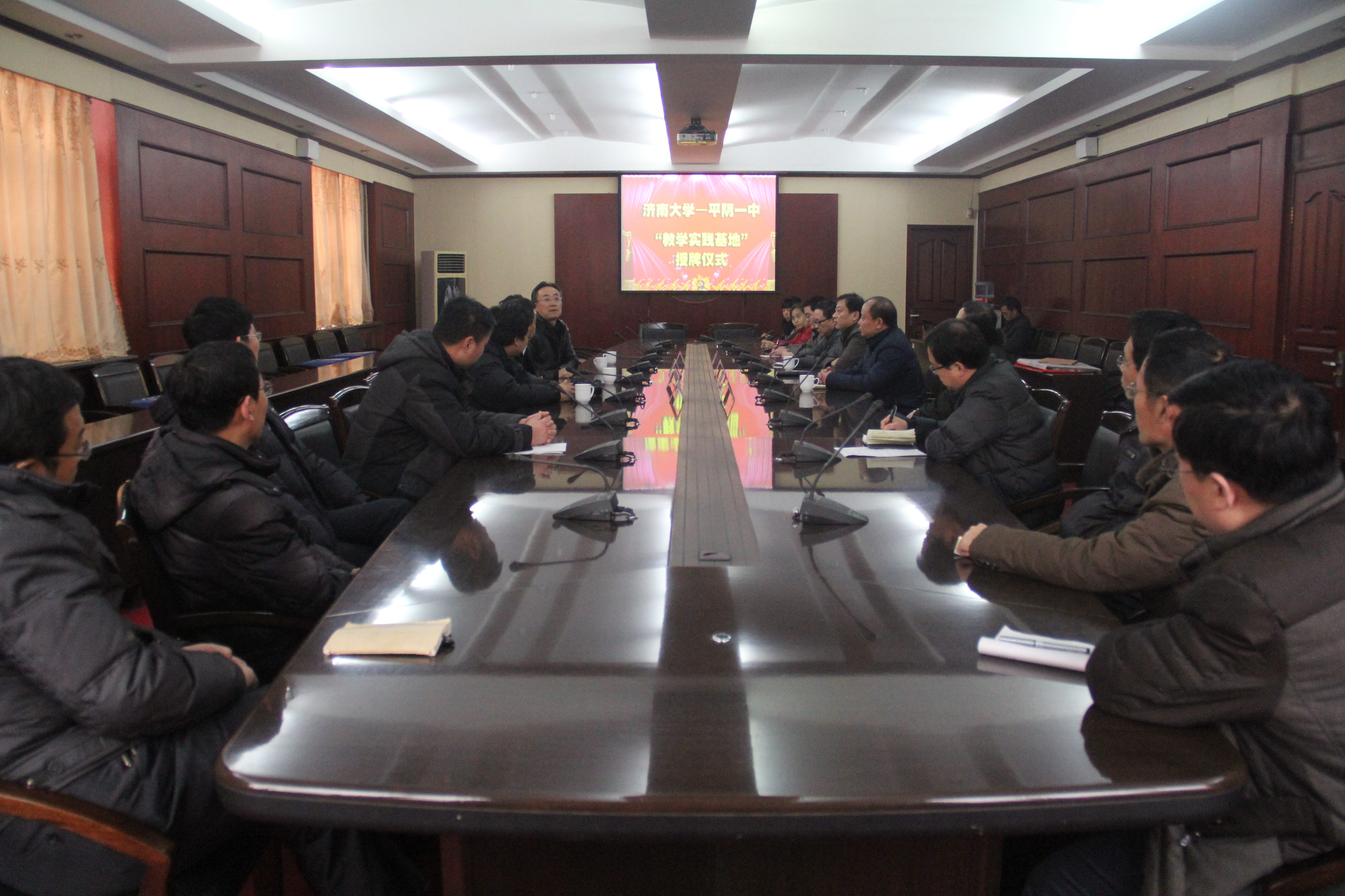 1月15日下午,英国上市公司官网365-平阴第一中学实践教学基地暨青年创业见习基地签约挂牌仪式在平阴一中会议室举行。英国365集团院长管延勇、副院长王纪辉、数学教育教研中心负责人以及平阴一中校长张立民、副校长贾勇和高中各级部主任、数学教研组长等有关同志参加签约挂牌仪式。