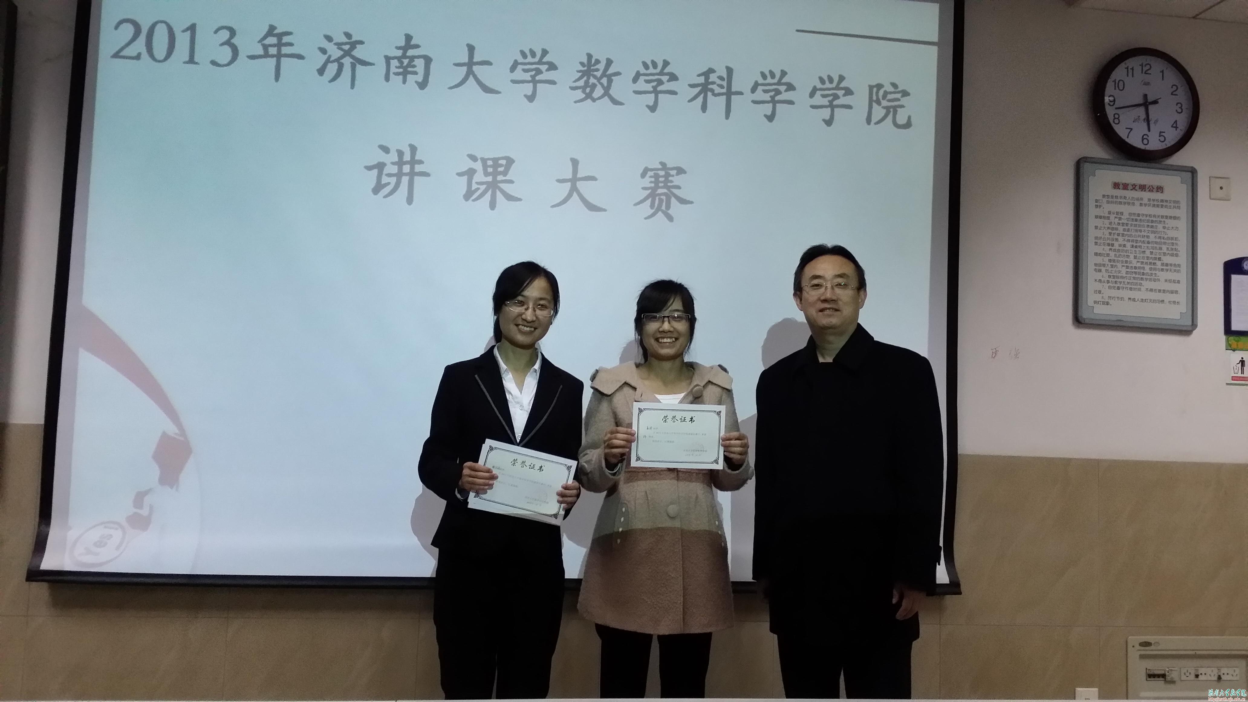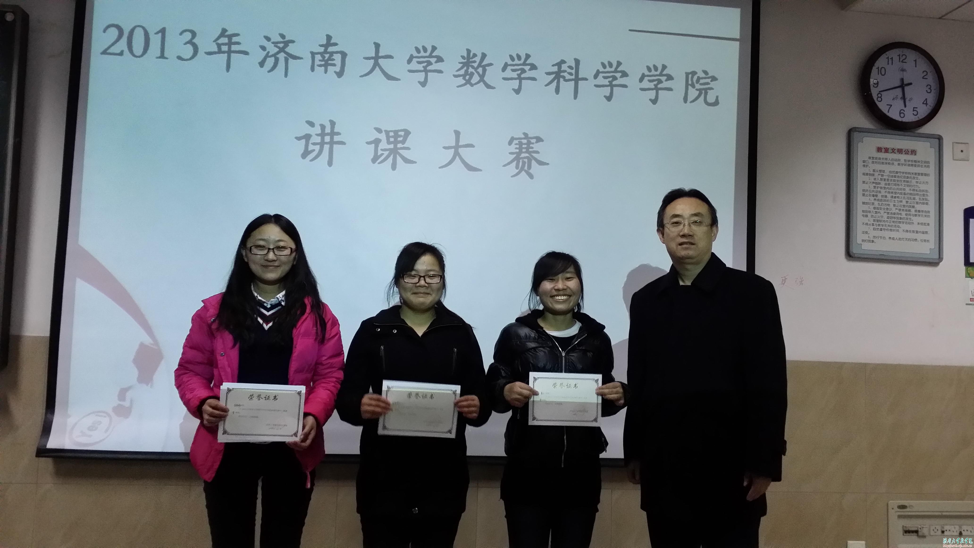 2013年12月3日下午,在1J0507举行了2010级数学与应用数学专业实习汇报暨讲课比赛。