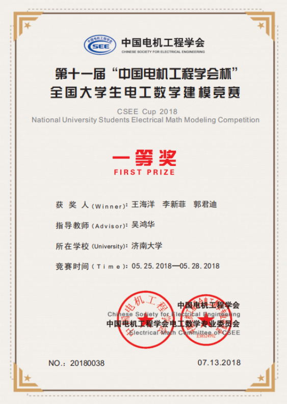 近日,第十一届“中国电机工程学会杯”全国大学生电工数学建模竞赛成绩揭晓,我校代表队取得了全国一等奖3项,全国二等奖28项,全国三等奖53项的优异成绩。