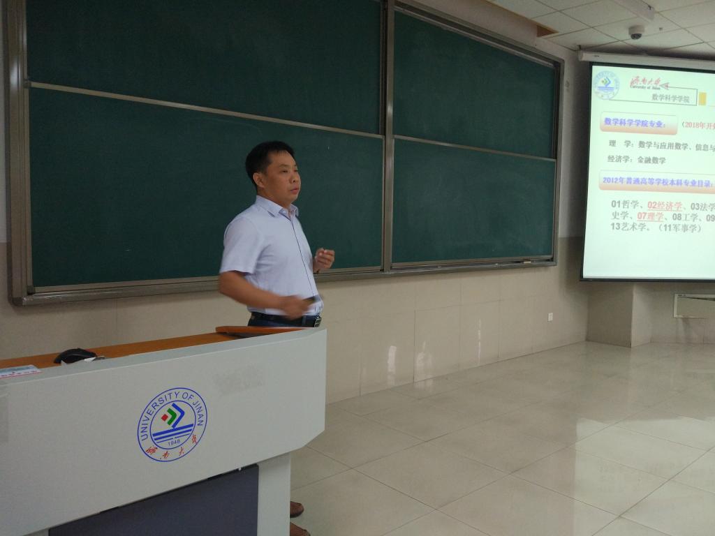 王副院长的报告主要从学院开设的专业近况、学分制模式下的课程体系和对大学生活的建议三个方面展开。宣讲伊始,王副院长首先对各专业进行了概述,并讲述了数学院中各专业的发展历史,重点强调了金融数学、数学与应用数学和信息与计算科学的课程设置、就业方向以及毕业生现在的发展状况。随后,王副院长向同学们展示了学分制的内容以及基本要求。他表示,大学的学习是学习知识、提高能力,并提醒新生大学课程多、课堂信息量大,一定要着重于基本原理和基本思想的掌握,积极练习,养成自主性、独立性等习惯。最后,王院长希望新生要有一个明确的奋斗目标和良好的学习习惯,要制定课外阅读计划;注意作息习惯,有一个健康的身体;更重要的是一定要学会尊重和包容。