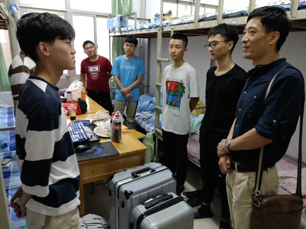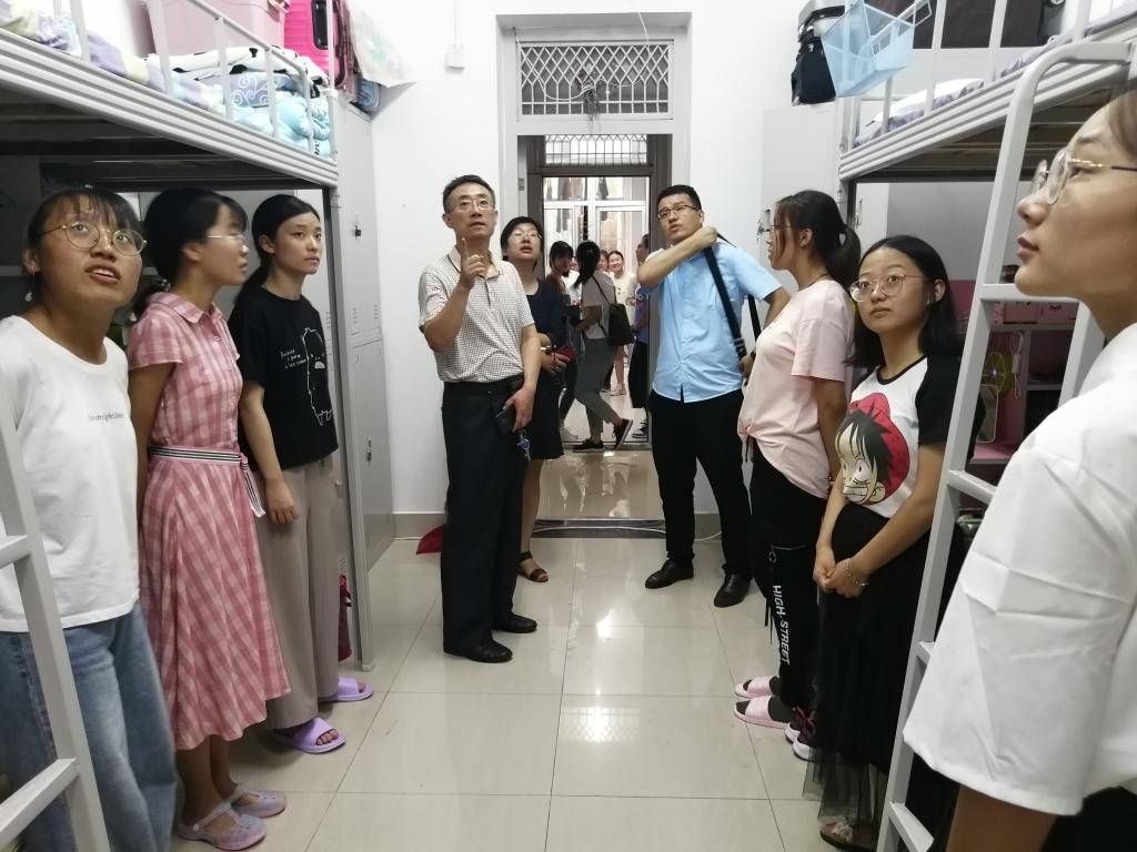 9月1日,英国365集团党委书记侯启海、院长管延勇、党委副书记兼副院长孟德洋与学办全体辅导员、部分班主任代表深入学32、34学生公寓,检查学生公寓配套设施,亲切看望2019级新同学。