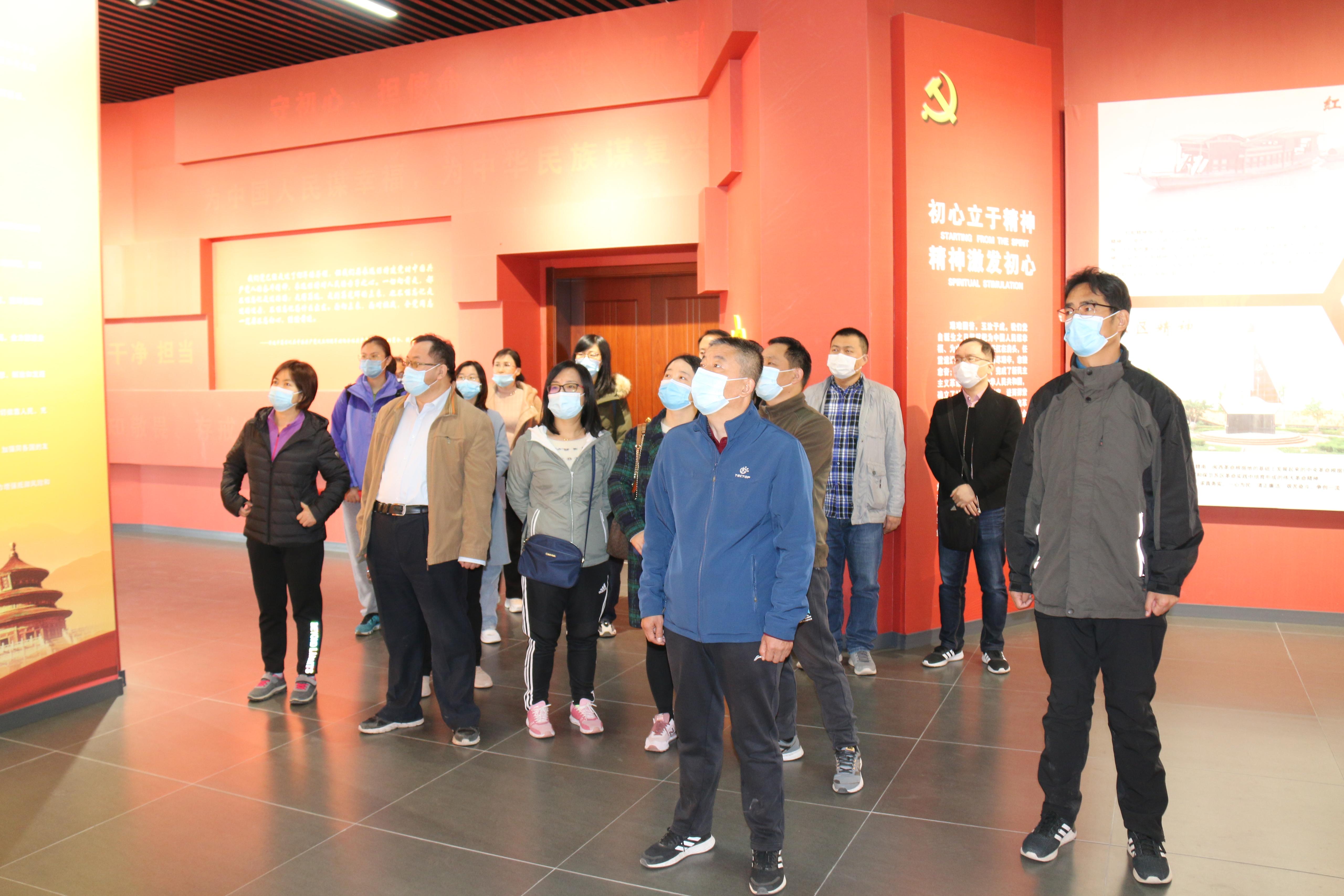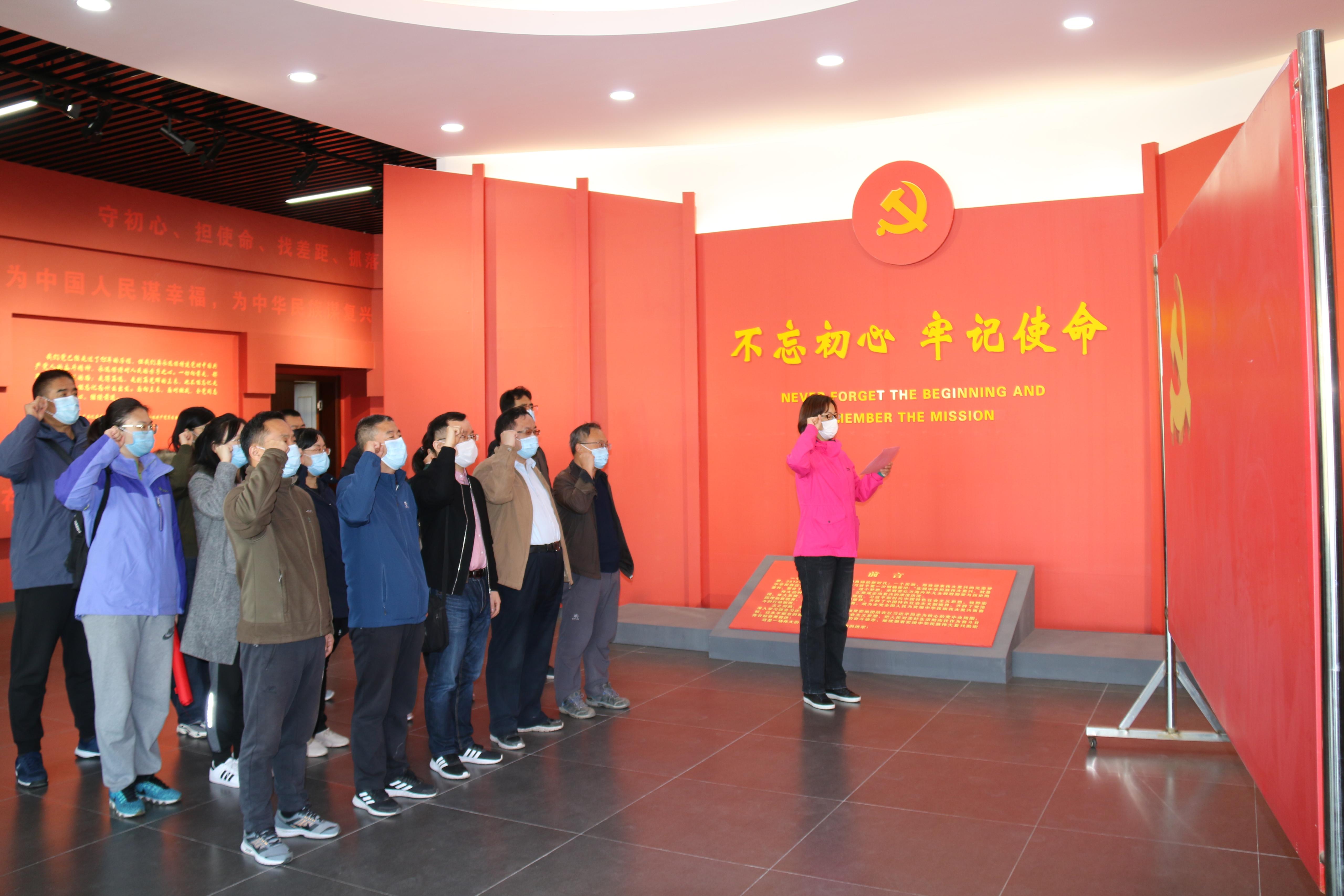 在原山党性体检馆内,大家集体奏唱了国际歌,参观了知识长廊,观看了党性教育专题记录片。在依次完成党性知识学习和党性教育专题片观看以后,全体党员列队肃立,在鲜红的党旗下,高举右手庄重宣誓,重温入党誓词。铿锵的誓词,激励党员们不忘初心、牢记使命、接续奋斗。