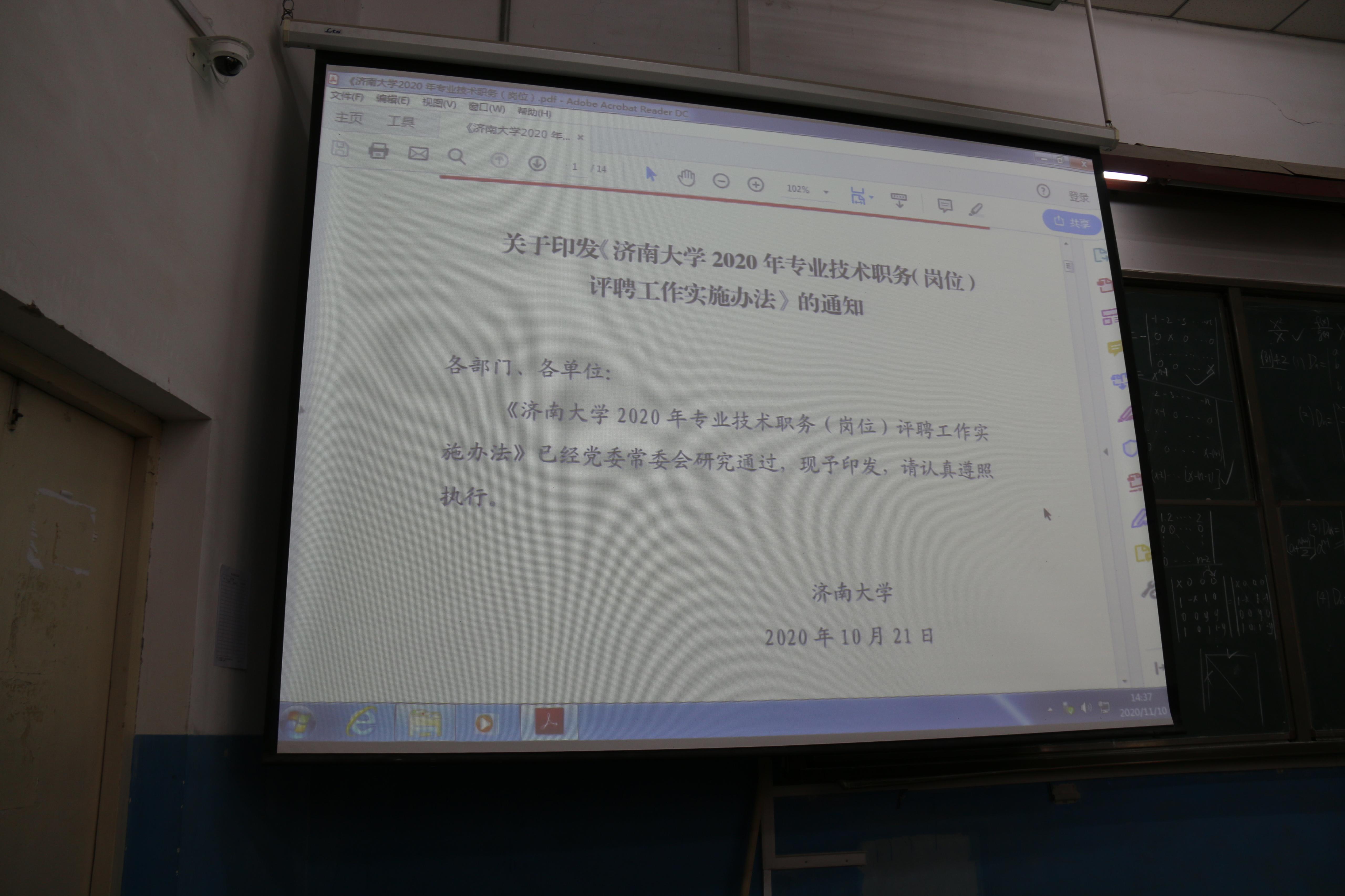 会上,管延勇院长详细解读了《英国365集团外派挂职人员管理规定》,传达了《英国上市公司官网365 2020 年专业技术职务(岗位)评聘工作实施办法》,从基本原则、岗位类别、申报人员范围、申报条件、关于转系列评聘、推荐评聘办法、申报评聘程序、关于论文、著作的申报数量、有关说明、组织要求十个方面对文件进行了系统解读。管院长表示,专业技术职务(岗位)评聘工作是学校以及学院的一项重要工作,是学院人才队伍建设的重要一环,关系到广大教职工的切身利益,希望符合申报条件的老师高度重此项工作,积极申报相应的职称并按时提交申报材料。随后,管院长还就教师岗位目标完成情况、新进教师发展、项目申报、科创科创活动、青年教学能手、师范类专业认证等具体工作做了进一步动员和强调。