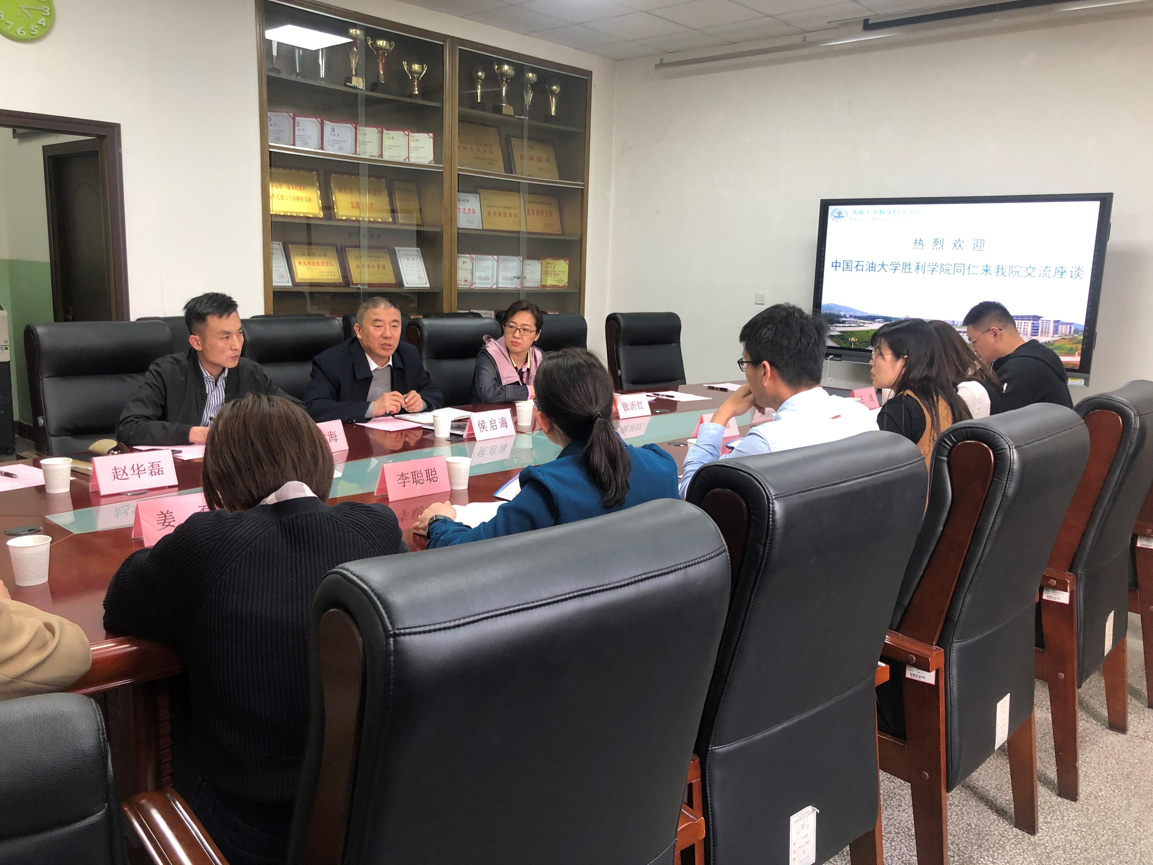 4月15日下午,中国石油大学胜利学院机械控制与工程学院党总支副书记张成明,油气工程学院党总支副书记李聪聪,教育与艺术学院党总支副书记王晶,机械控制与工程学院学工办主任姜磊,油气工程学院学工办主任王成,教育与艺术学院学工办主任胡洪翠,专职辅导员王兆婷一行来我院进行学生工作交流座谈。英国365集团党委书记侯启海,英国365集团党委副书记、副院长张沂红,团委书记赵华磊以及兄弟学院团委书记、辅导员参加座谈。