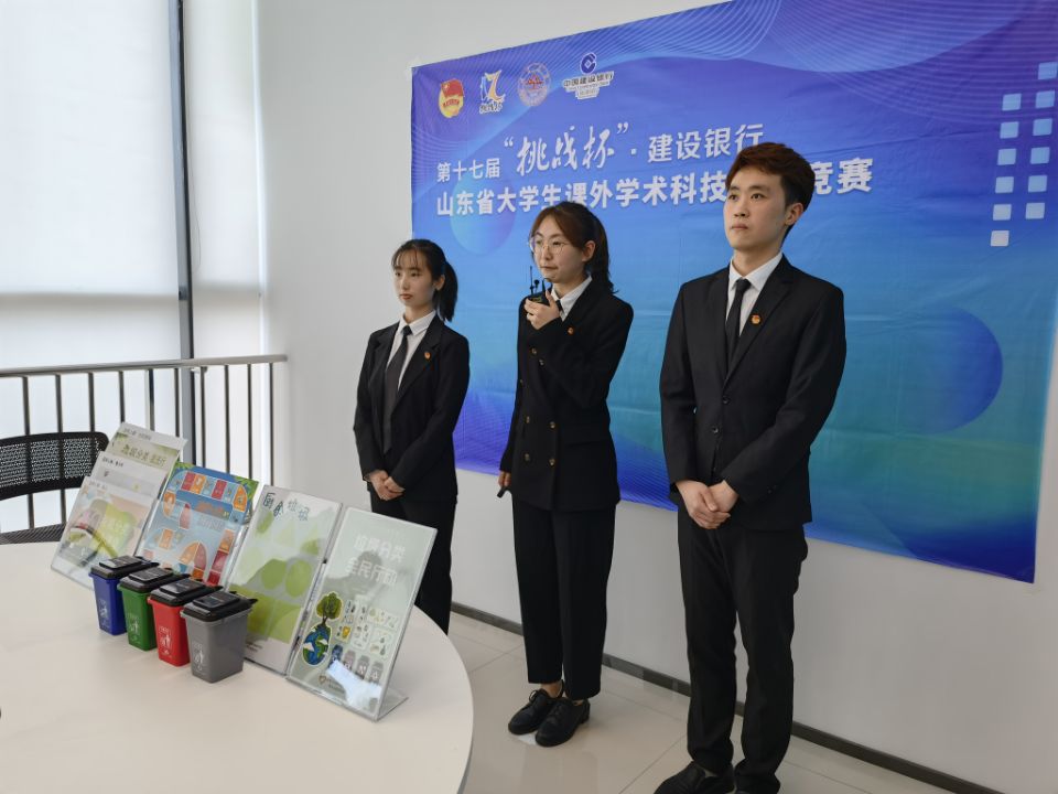 近日,第十七届“挑战杯”·建设银行山东省大学生课外学术科技作品竞赛终审决赛在山东大学中心校区落下帷幕。由我院赵华磊老师、吴立军老师、房琳琳老师指导,刘嘉宾、侯威辰、曹茜颖、张咬福、王蕊、刘思聪、陈佳胤、王广增同学完成的“垃圾分类与全民行动——城市垃圾分类宣教新模式”项目荣获省一等奖。