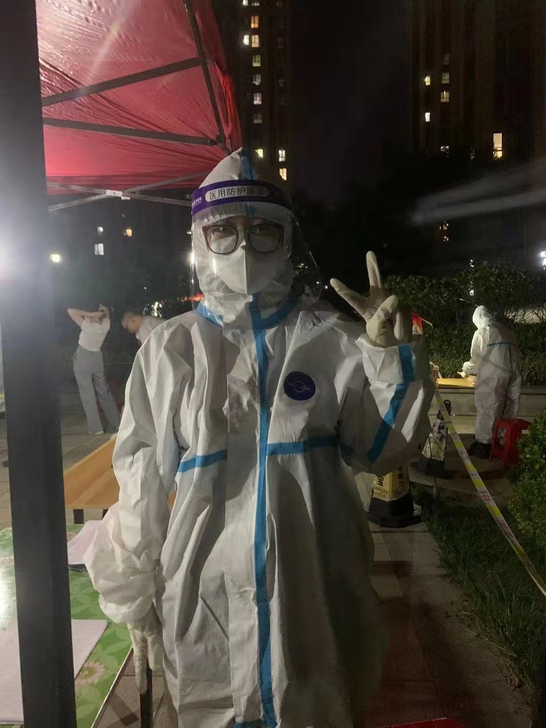 数学2002班杜雪瑜同学在关注到共青团烟台市委面向社会各界发布疫情防控青年志愿者招募令时,第一时间就报了名。她被分配到福莱山街道华明星海湾小区的核酸检测点,主要负责信息登记、秩序维护等工作。从穿好防护服的那一刻,杜雪瑜同学便马不停蹄的开始工作。检查居民健康码是否为绿色、维持现场秩序、核对居民身份信息、进行信息登记、耐心解答社区居民提出的各种问题......这些经历让杜雪瑜同学深刻体会到了众志成城、同心抗疫的意义。她说:“作为一名青年大学生,能够参与此次志愿服务深感荣幸,不仅仅是为疫情防控工作尽自己的一份力量,更是配合全国疫情防控工作,早日迎来抗疫成功的一天。这是一场没有旁观者的战疫,所有人都是参与者!”