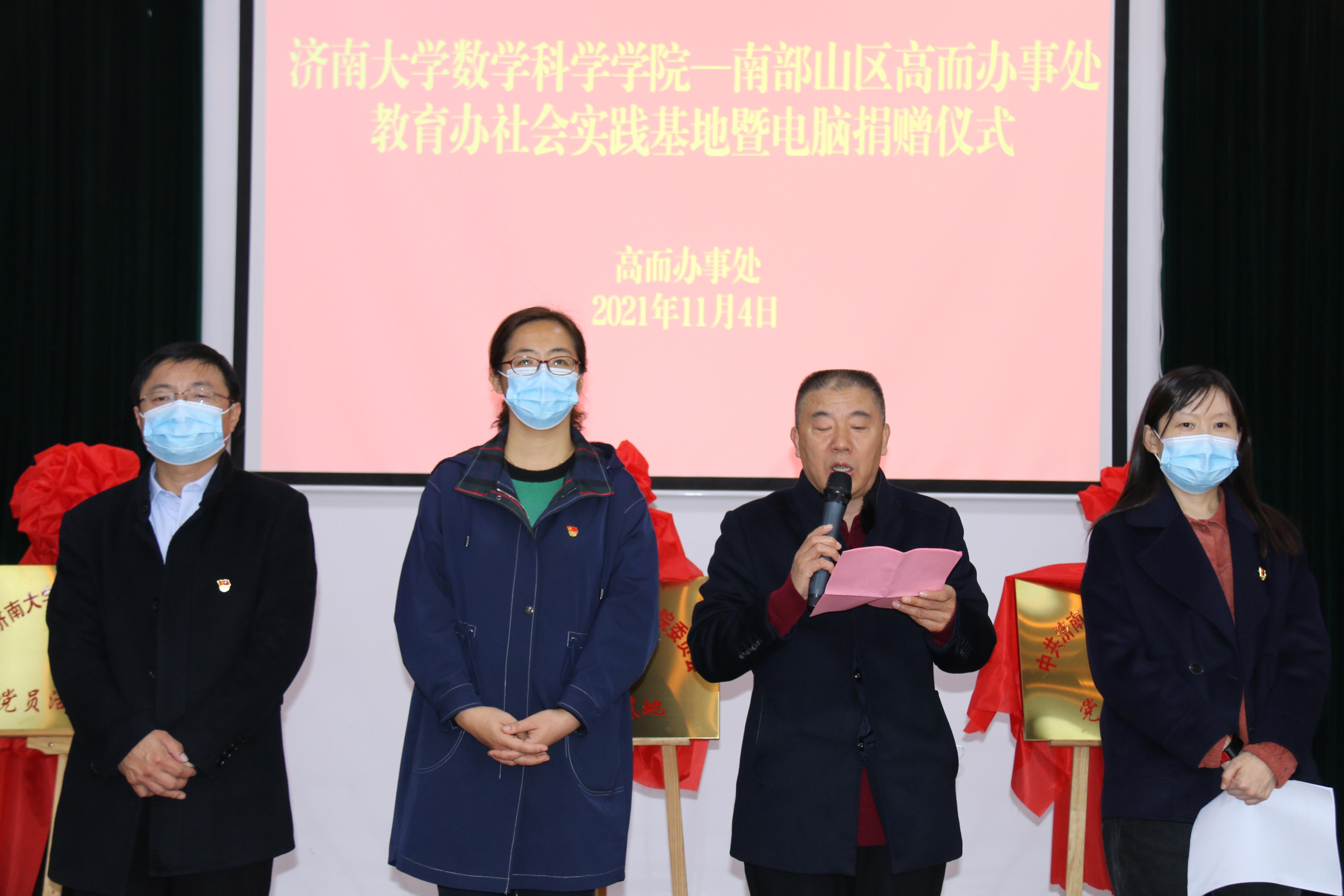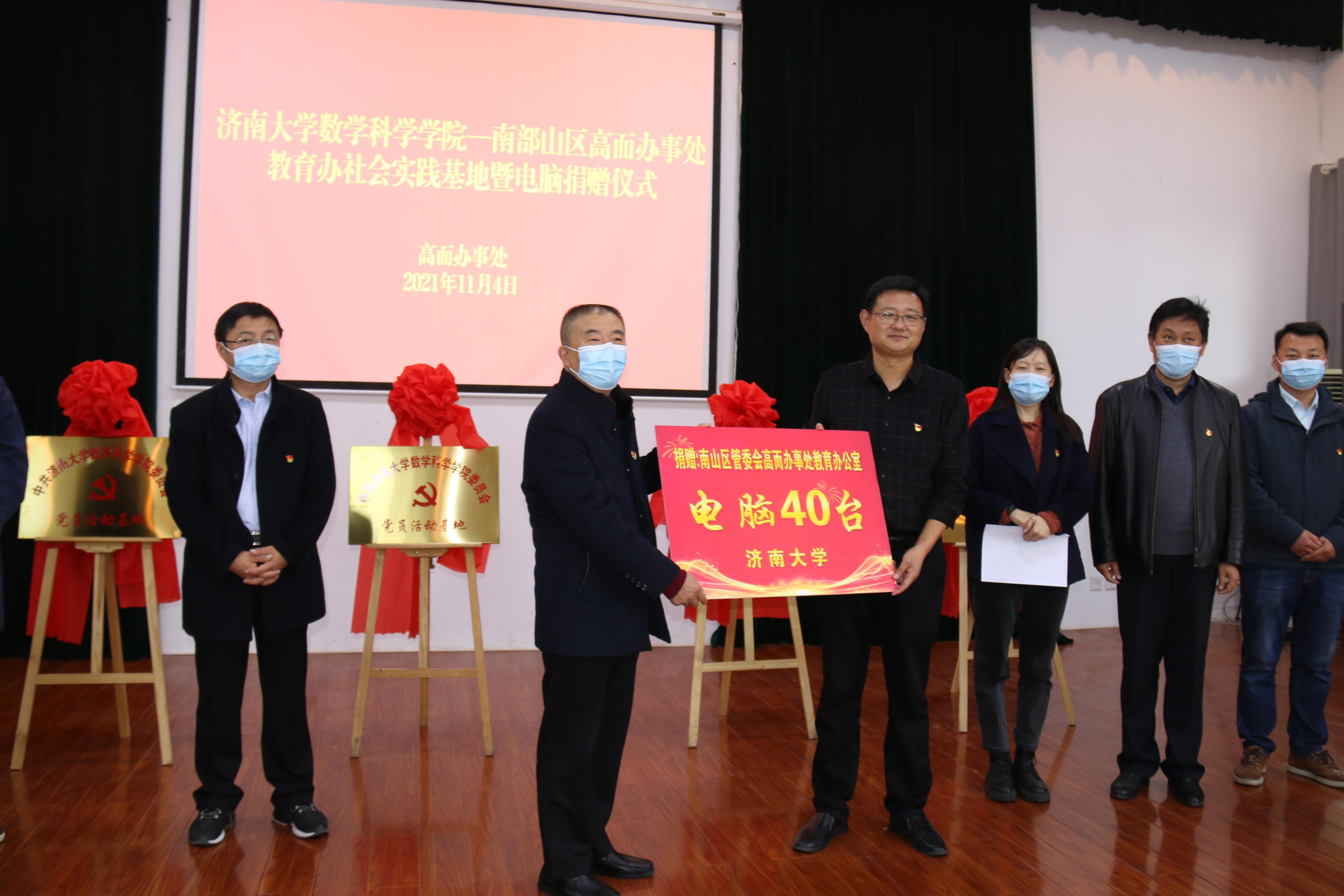 侯启海书记作了讲话。他说,今年是中国共产党成立100周年,是全面实施“十四五”规划、开启全面建设社会主义现代化新征程的开局之年。在全党上下深入开展党史学习教育之际,学院在南山区管委会高而街道办事处中小学建立党员活动基地并向中小学捐赠电脑,这是持续推动学党史办实事走深走实,积极拓展校地合作渠道,巩固提升“协同育人”办学模式的新路子,我们将以此为契机,继续践行“不忘初心、牢记使命”主题宗旨,做到学史明理、学史增信、学史崇德、学史力行,做到学党史、悟思想、办实事、开新局。侯启海强调,希望党员活动基地的建立,能够使得党员和青年学生真的俯下身子,深入农村、深入学生,了解民情、乡情和学情,在做实事、开新局的过程中,增强本领,锻炼成长,做到为党育人,为国育才;希望通过党员活动基地的建立能够使四所学校成为英国365集团的活动之地、实践之地、实训之地、成长之地和育人之地;希望通过活动基地的建设能够把四所学校打造成为中小学生拓展视野的平台、增长知识的平台、传播先进文化的平台、全面健康成长的平台、成就伟大梦想的平台。
