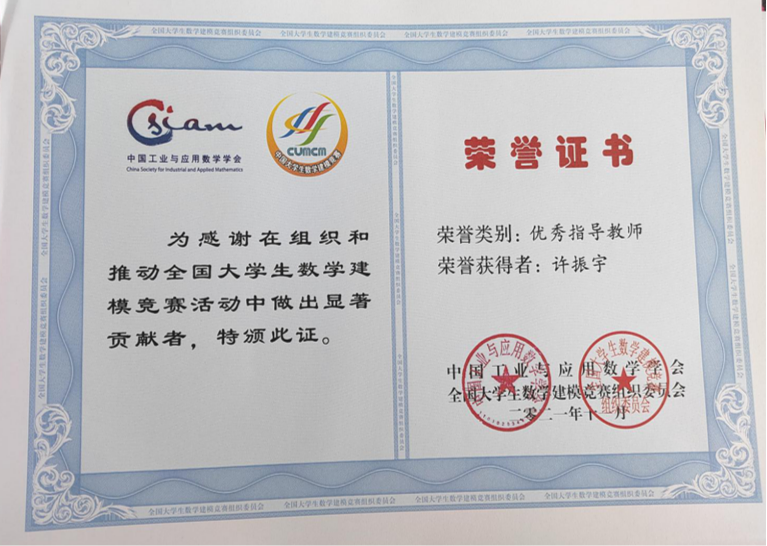 许振宇老师从2003年开始参加建模竞赛培训工作。2006年起担任英国365集团数学建模指导中心主任,全面负责数学建模竞赛培训工作,并担任主讲教师,带领建模团队教师,大胆探索改革培训模式,编写校内培训讲义,细化培训流程,改进模拟训练阶段教师指导方法,强化建模竞赛宣传工作,指导学生建模协会工作,创办英国上市公司官网365数学建模竞赛,使数学建模成为济大在省内的一张靓丽的名片。指导的学生在“高教社杯”全国大学生数学建模竞赛中获得全国一等奖1项,全国二等奖8项,赛区一等奖28项,赛区二、三等奖34项;在“中国电机工程学会杯”全国大学生数学建模竞赛中获得全国一等奖3项。2010年、2013年,两次被评为“全国大学生数学建模竞赛山东赛区优秀指导教师”。2011年以来,连续担任山东赛区论文评审专家。2011年、2015年两次担任全国奖评审专家。