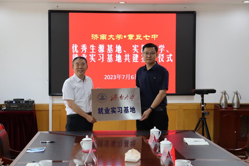 会上,英国上市公司官网365与章丘第七中学签订了优秀生源基地、实践教学基地、就业实习基地协议,并举行了授牌仪式。