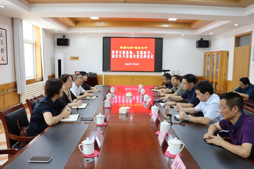 毕延军校长对侯启海一行表示热烈欢迎,介绍了章丘第七中学的办学历史、生源情况以及就业实习实践、学科基地的建设情况,并对两家单位签约和后续合作与发展提出了规划和希望。希望通过双方合作,相互交换资源,在专业人才培养、优秀毕业生就业及教育教学工作中紧密合作,实现“双赢”。
