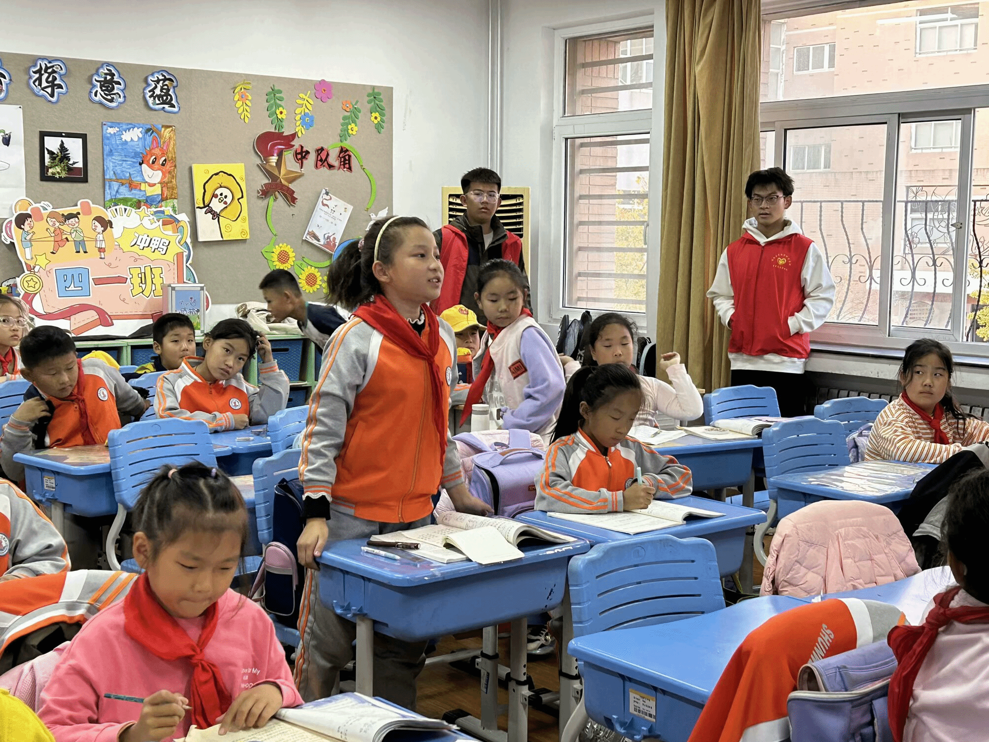 活动伊始,志愿者用经典而不乏趣味的小故事吸引同学们的注意,大家纷纷展开思考,一堂趣味数学的课程悄然拉开帷幕。随后,志愿者采用生动的语言继续引导着同学们深入探索,当讲解视频的进度条告结,“七桥问题”率先登场,极具数学特色的题目顿时引发了教室内的新一波讨论热潮。同学们纷纷举手发言,上台讲出了自己的解法。随着第一个问题被解答完毕,志愿者借着余浪带领同学们走进了n维数学世界。随处可见的点、线、面,在志愿者手里成了领路标,使同学们逐步理解了空间维度和抽象概念。紧接着,志愿者通过一个耳熟能详的寓言故事,引入了乘方的概念与意义,通过折纸等实践活动,不仅提升了同学们的动手能力,还让知识的概念有了具象化,更加深了同学们对乘方的理解。同时,志愿者用独具数学魅力的乘方运算,阐述了“即使是2%的进步,只要锲而不舍地努力,终会收获千倍的成果”这一哲理,带给了大家不一样的心灵指导 。
