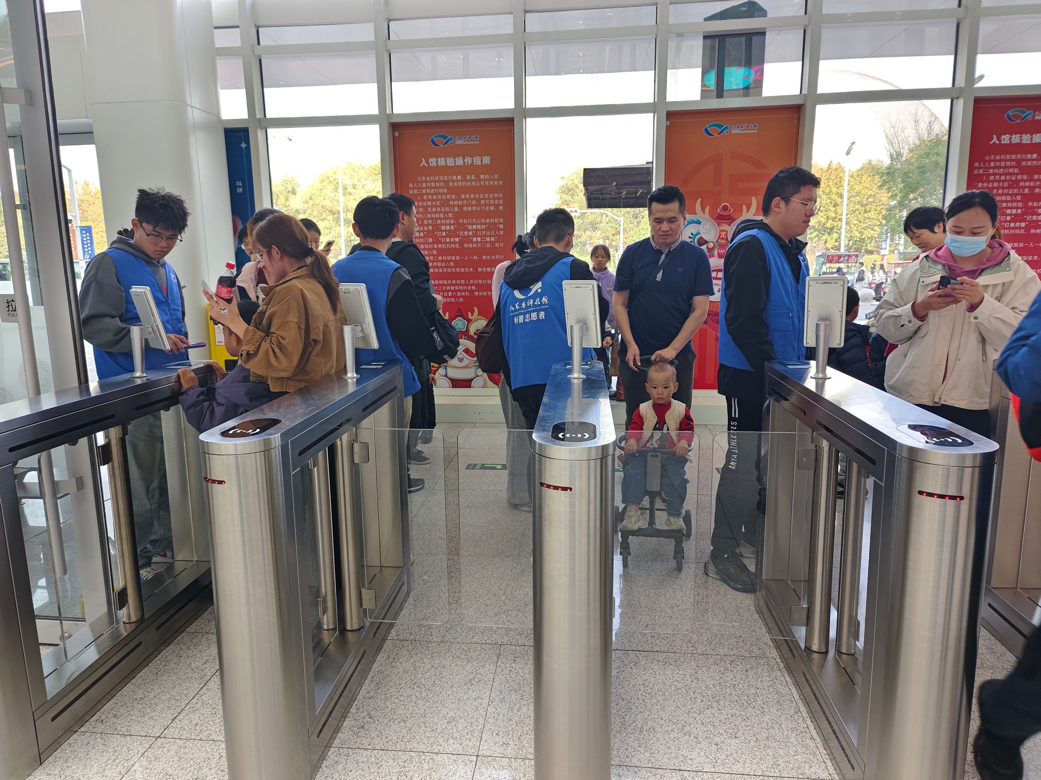 活动伊始,在山东省科技馆的工作人员的带领与介绍中,志愿者们快速熟悉各自的工作,身着蓝色马甲,积极热情地投身于志愿服务中。他们有的引导参观者通过小程序预约二维码和身份证有序进馆参观,做到一人一码,严格遵守场馆秩序;有的认真倾听参观者的需求,用热心和耐心的态度解答他们的问题,尽己所能给予参观者最全面的服务,让他们获得满意的体验。英国365集团的志愿者们始终保持饱满的热情和认真负责的态度,大大激发了参观者对于科学探索的兴趣。
