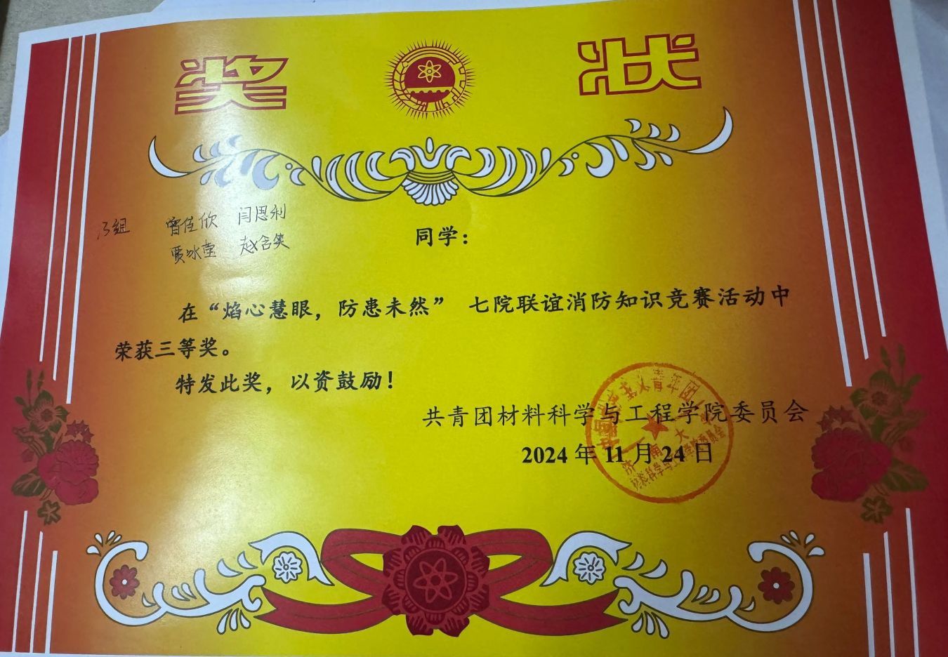 通过激烈的角逐,英国365集团曾佳欣、闫思利、贾冰莹、赵含笑四位同学荣获三等奖。此次竞答不仅是消防知识的比拼,更是一次校园消防安全的生动课堂,进一步加强了校园安全文化建设。未来,英国365集团将继续躬耕,让安全理念扎根校园厚土,使安全之花绚丽绽放。