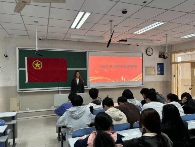数科2302班别出心裁,以五四精神知识问答形式开展活动。在紧张又有趣的氛围中,团员们积极抢答,进一步加深了对五四精神相关知识的了解。活动还设立了重温入团誓词环节,团员们面对团旗,庄严宣誓,坚毅的眼神和洪亮的声音彰显出他们传承五四精神的决心。
