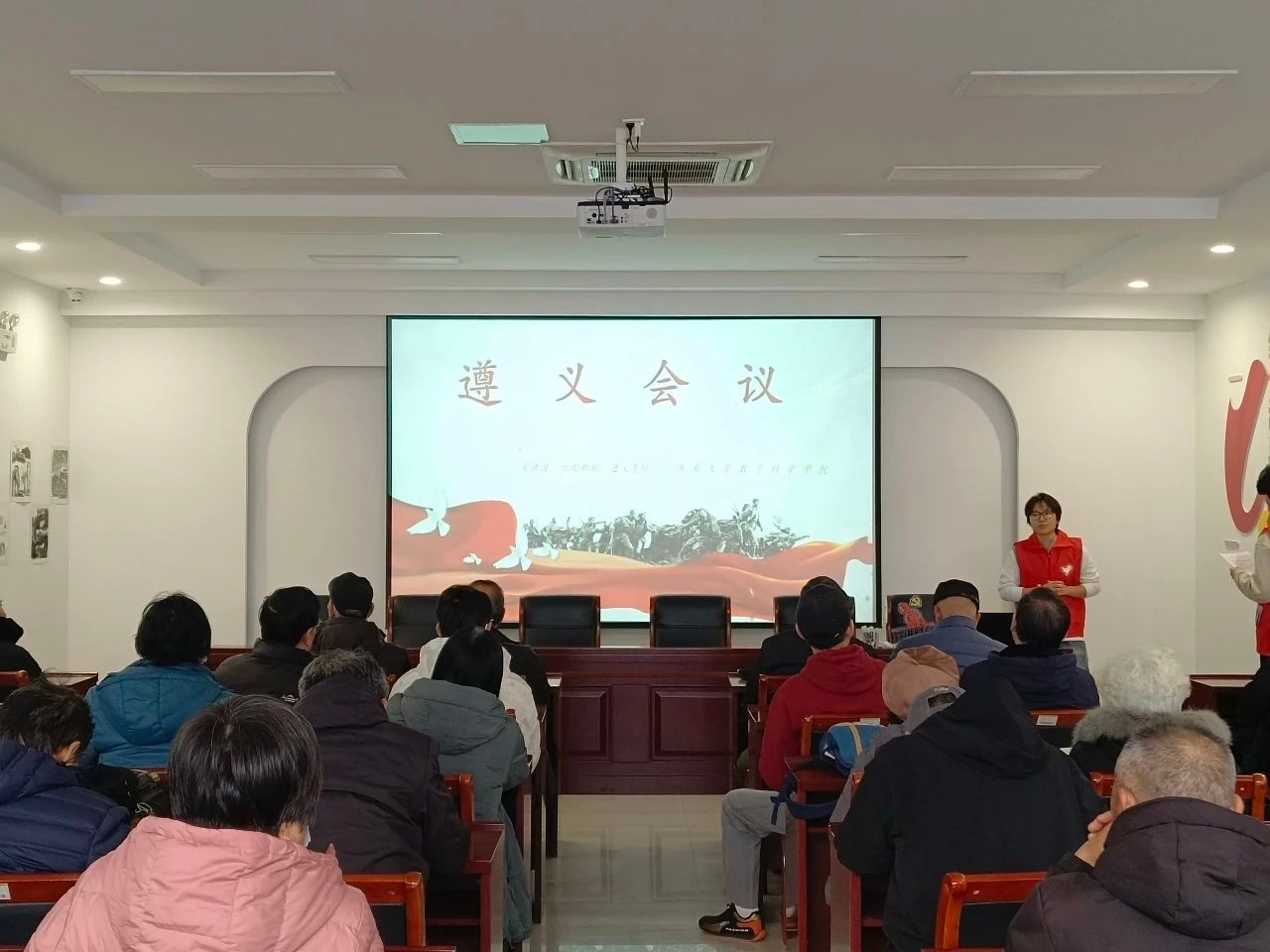 宣讲会上,宣讲团成员首先从遵义会议的历史背景、基本过程和重大意义三个方面,具体介绍遵义会议的详细内容,指出遵义会议不仅确立了毛泽东同志在党中央和红军的领导地位,更是中国共产党历史上一个生死攸关的转折点,挽救了党、挽救了红军、挽救了中国革命。此外,宣讲团成员结合党的百年辉煌历程,深刻阐述遵义会议精神的主要内涵,即坚定信念、坚持真理、独立自主、团结统一。他们强调,这些精神特质,不仅是革命时期的重要法宝,更是新时代我们应对各种挑战、实现民族复兴的强大精神动力。宣讲过程中,宣讲团成员还通过视频让居民们更加直观地感受到遵义会议精神的伟大和革命先辈的英勇无畏。活动最后,居民们纷纷发言,分享自己对遵义会议精神的理解和感悟,现场气氛热烈而融洽。