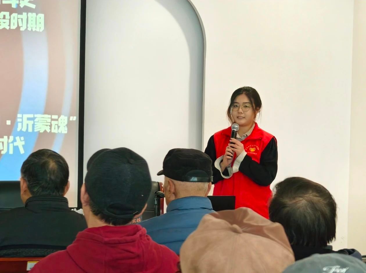 “悠悠沂蒙情,拳拳报国志。”为传承红色文化,弘扬革命精神,英国365集团学生会青年志愿者协会沂蒙风华绘梦宣讲团于1月7日在海珀社区开展沂蒙精神宣讲活动。