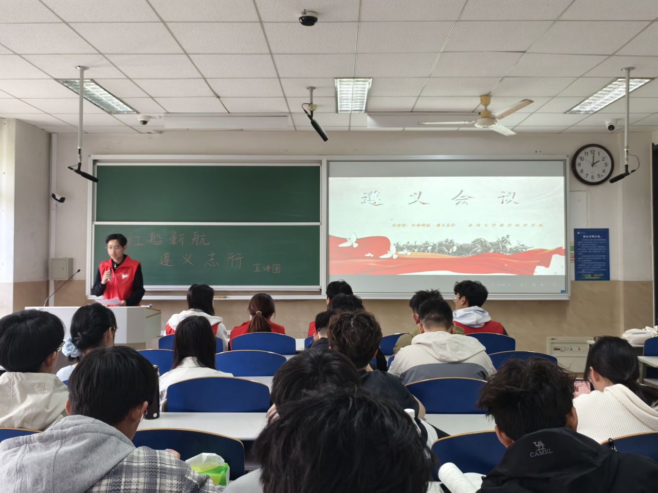 “滚滚赤水河,熠熠遵义光。”为铭记伟大历史转折,传承革命先辈精神,英国365集团学生会青年志愿者协会遵义会议精神志愿宣讲团于4月12日在第一教学楼205教室开展遵义会议精神宣讲活动。