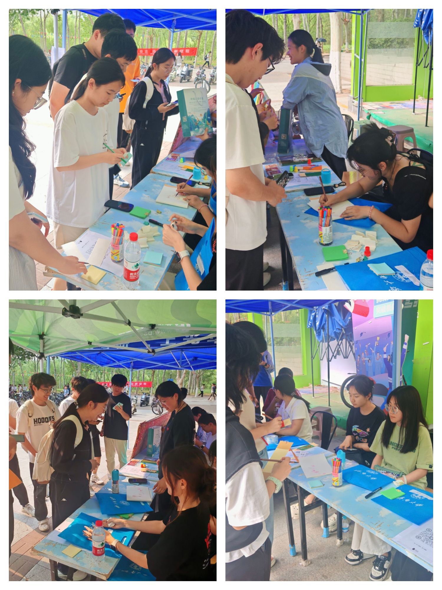 活动现场设置四大创意环节:“情绪盲盒交换计划”以匿名卡片为载体,同学们在书写烦恼与回赠建议的双向互动中实现情绪共鸣;“心情贴纸创作”则借助多彩贴纸,将抽象情绪转化为可视化心情图案,进而投射内心世界;“默契大挑战・你画我猜”通过绘画演绎与情绪解码的趣味联动,检验同学间默契;“冲破心灵壁垒”则邀请参与者在便签写下“万物皆有回甘”等治愈箴言,将温暖祝福张贴于“心灵展板”,构建可视化的情感支持空间。四大环节从情绪释放、艺术表达、团队协作层层递进,让同学们在游戏化体验中完成情绪认知升级,同步搭建起朋辈心理互助网络,为心理健康教育注入“游戏化”活力。