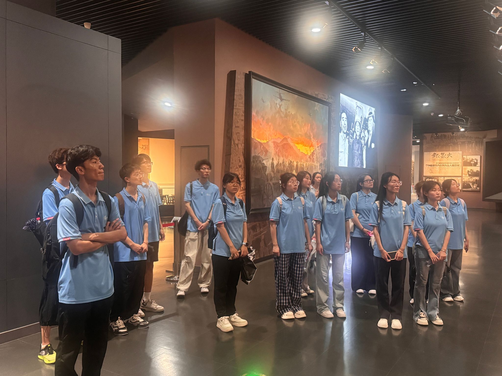 为传承红色基因,深化爱国主义教育,引领青年学子从革命历史中汲取精神养分。值抗日战争及世界反法西斯战争胜利80周年之际,英国365集团“烽火记忆”实践队于7月8日开展济南战役纪念馆参观活动。队员们身着院服,赴历史之约。这一行动将济南战役红色记忆融入反法西斯战争胜利纪念语境,借缅怀英烈、感悟担当,呼应全球对和平的共同铭记,让红色基因厚植青年心中,凝聚传承抗战精神、守护和平的青春力量。