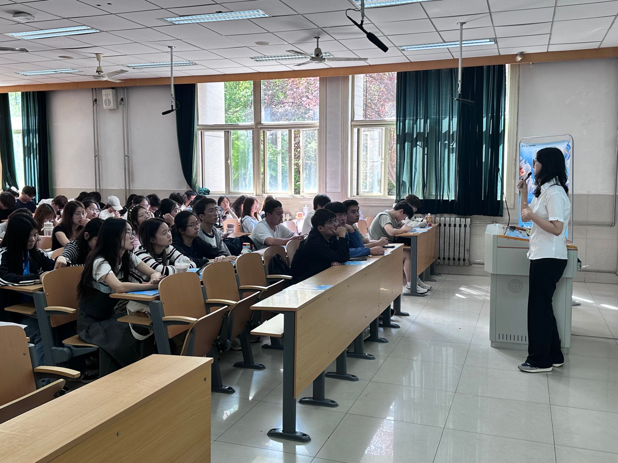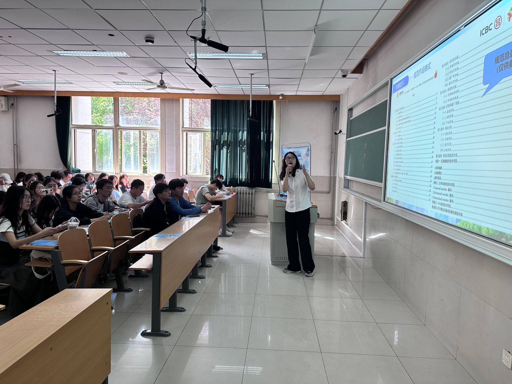 本次全国大学生金融科技创新大赛由中国工商银行主办,经多届发展,已成为全国高校师生高度认可的大学生创新赛事。宣讲会上,工作人员先围绕赛事核心要点展开讲解,明确两大参赛方向:“科技弄潮” 赛道聚焦 AI 大模型等前沿科技在银行领域的应用创新,“未来银行” 赛道则关注金融场景解决方案的模式变革与服务创新。随后,宣讲人分享山东赛区往届参与及获奖情况,以此为切入点,进一步明确作品格式规范要求,涵盖结构层次、字体、提交形式等细节。最后,工作人员热情鼓励在场同学踊跃报名,把握此次赛事机遇,充分发挥创新思维与专业能力,在金融科技创新的舞台上展现风采。