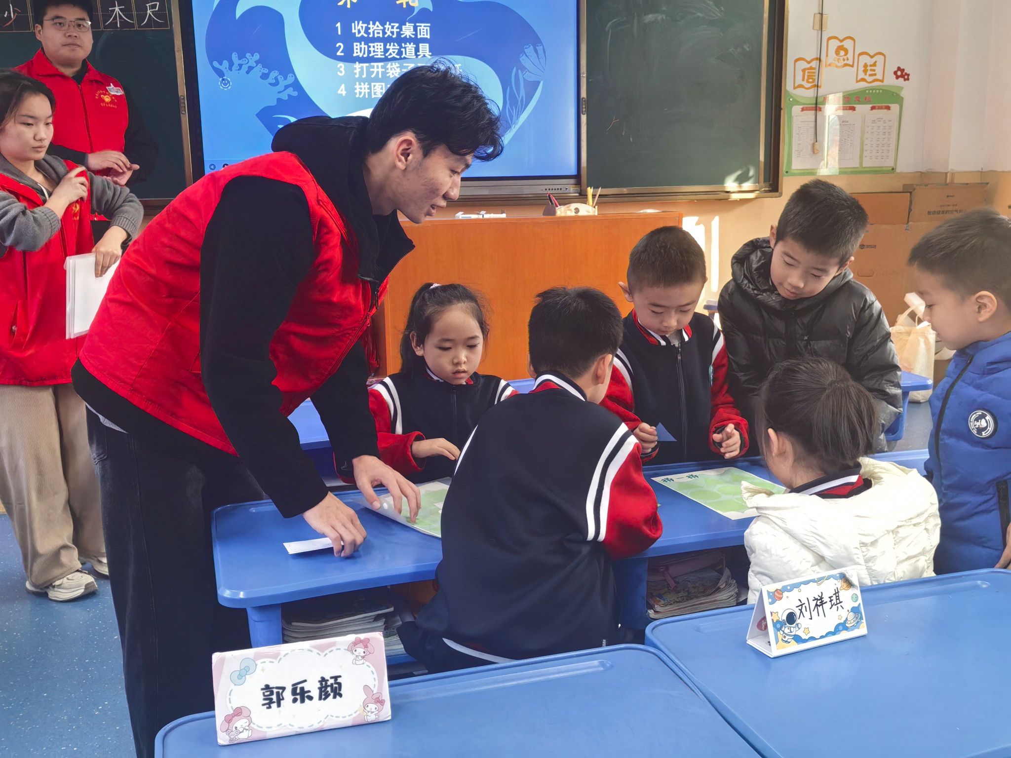 为积极响应山东省 “百万大学生进社区” 专项行动号召,切实履行高校服务地方、践行社会责任的使命担当,12 月 9 日下午,英国365集团青年志愿者协会组织志愿者队伍走进济南市市中区德贤社区,为辖区内的后龙小区一年级小学生开展了一场趣味十足的垃圾分类科普课堂活动。