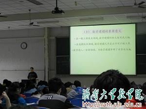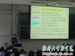 “一次参赛,终生受益”的标题醒目地显现在屏幕上,许振宇教授首先介绍了数学建模的定义,他强调,数学建模可以增强同学之间的团结协作、语言表达及思维转换能力,更重要的是,数学建模可以养正气,树信心,重塑一个健康、阳光、进取、无畏的自己。之后,许振宇教授又讲述了数学建模的一般步骤、举例及意义,这些都令人受益匪浅。他还强调,学生需要将机理分析与测试分析有机结合,用机理分析建立模型结构,用测试分析确立模型参数。最后,许老师留给了同学们几个与数学建模有关的思考题,以锻炼同学们的思维能力。