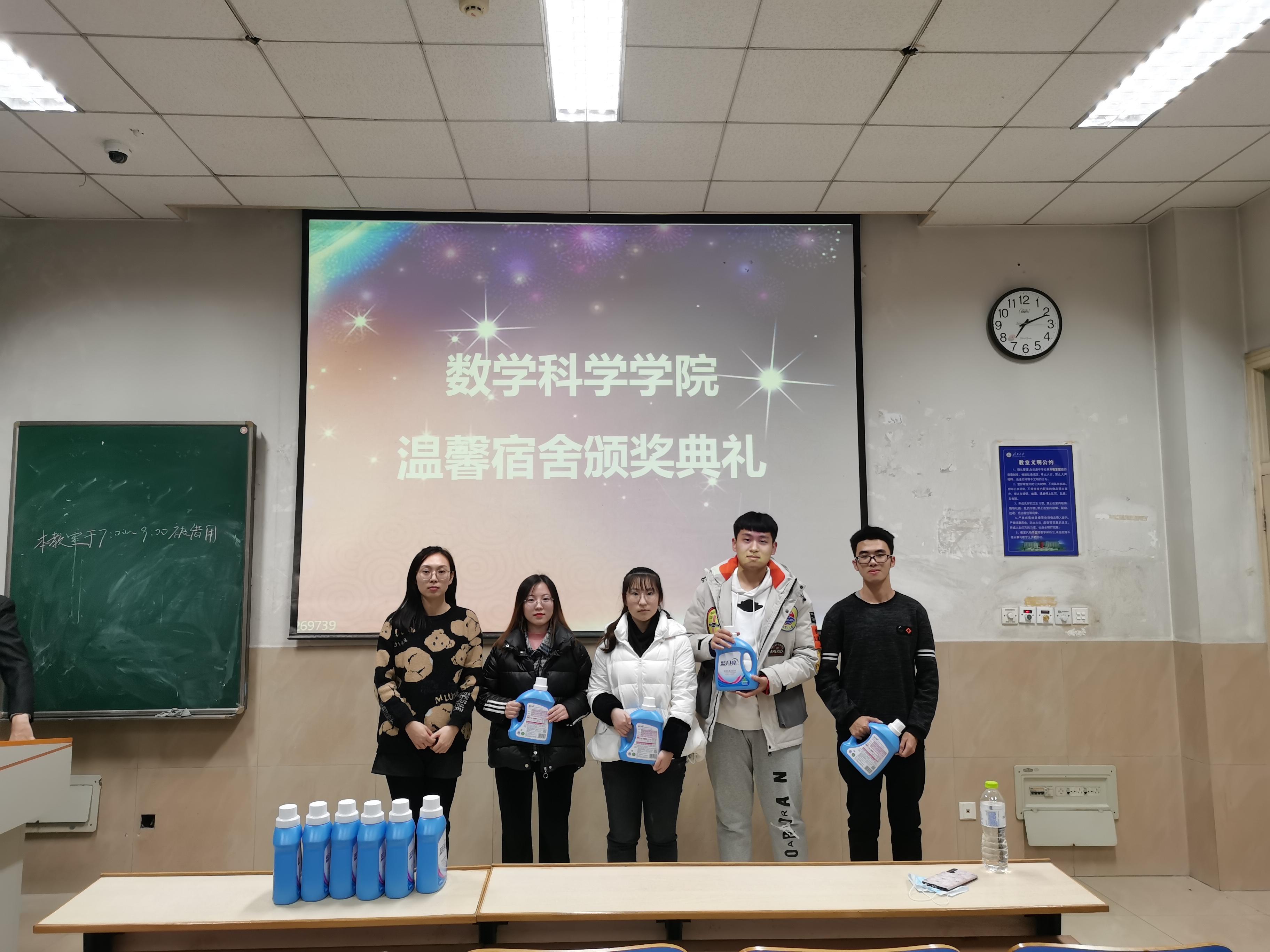 大会开始前,社管部的工作人员提前布置好现场,并准备好了奖状及礼品。随后,各宿舍代表有序签到。晚上七点,大会准时开始,主持人依次宣布了一等奖、二等奖、三等奖的获奖宿舍名单,全场响起热烈的掌声。紧接着,获奖宿舍代表在主持人的引领下上台领奖,并合影留念。他们表示他们会再接再厉并坚决维持好宿舍卫生。房琳琳老师首先肯定了这次温馨宿舍评选中每个同学的努力成果,并在对这次评选的总结时说:寒假即将来临,为了避免宿舍中虫害滋生现象出现,让同学们生活的更加舒适温暖,一定要保持宿舍整洁。宿舍代表纷纷表示赞同,并表示愿意督促其他同学一起维护好宿舍卫生。此次颁奖活动在各人员的配合下圆满结束。