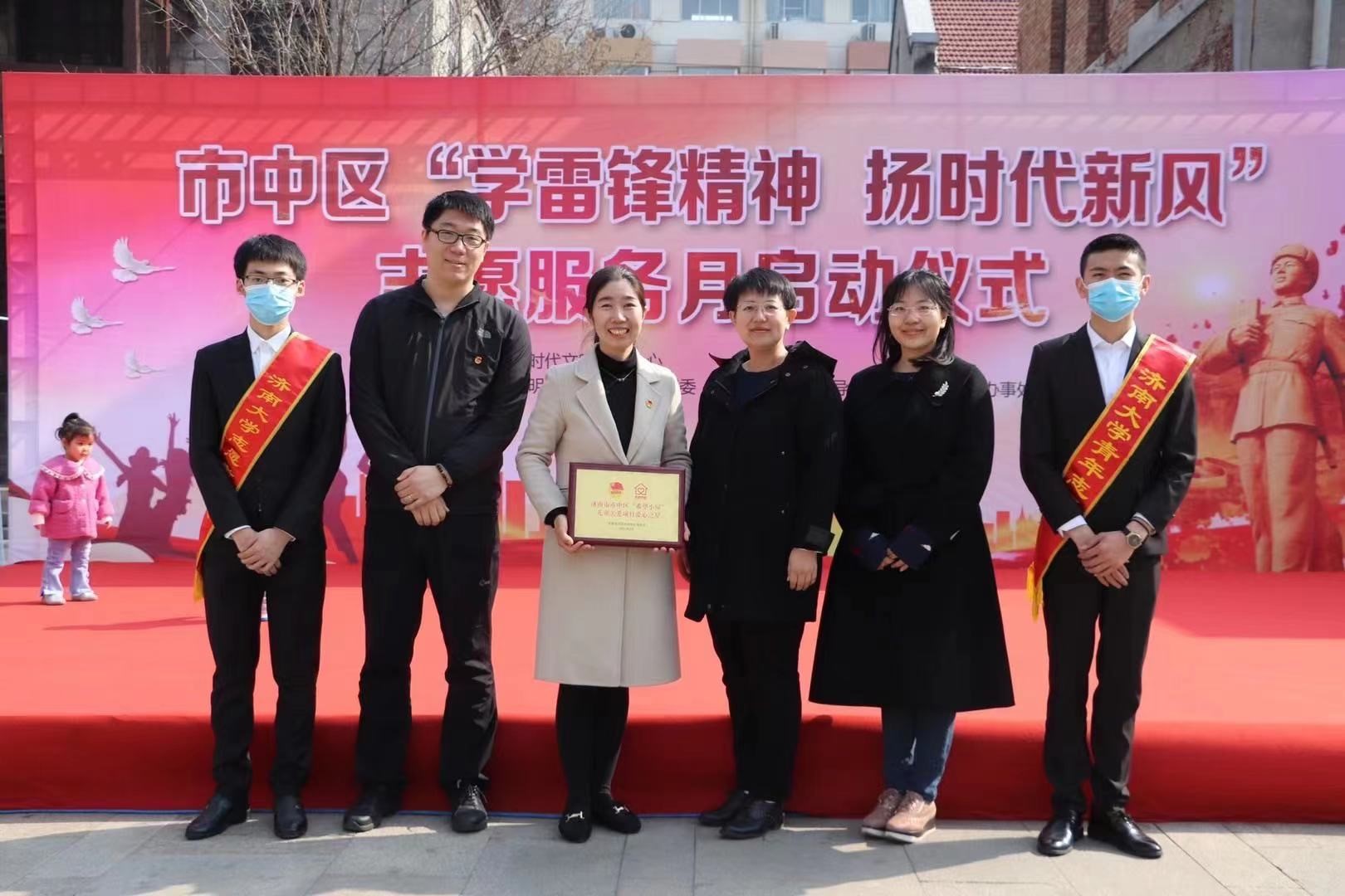 为进一步弘扬“奉献、有爱、互助、进步”的志愿服务精神,推动学雷锋志愿服务工作常态化、制度化,助力城市文明提升,进一步巩固学院志愿服务工作,激发大学生的青春热血。3月4日上午,由英国365集团团委书记赵华磊老师带队,参加了由市中区新时代文明实践中心主办,区文明办、共青团市中团区委、大观园街道办事处、济南市市中区志愿者联合会承办的市中区“学雷锋精神 扬时代新风”志愿服务月活动。市中区共12支新时代文明实践志愿服务队、部分区直单位志愿服务队和各类爱心志愿服务队的代表及街道团工委共150多人参与本次启动仪式。