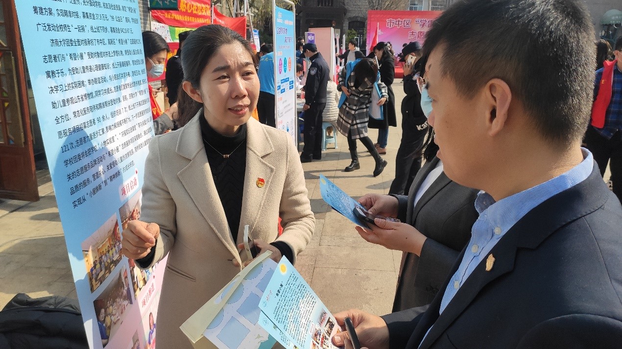 启动仪式结束后,各界志愿者代表们一起参观了“学雷锋精神 扬时代新风”公益市集,体验了禁毒知识科普、法律咨询、健康卫生服务及非遗传统手工展示等丰富多彩的活动项目。其中,我院的“希望小屋”项目及无痕济南环保公益讲堂备受大家关注。