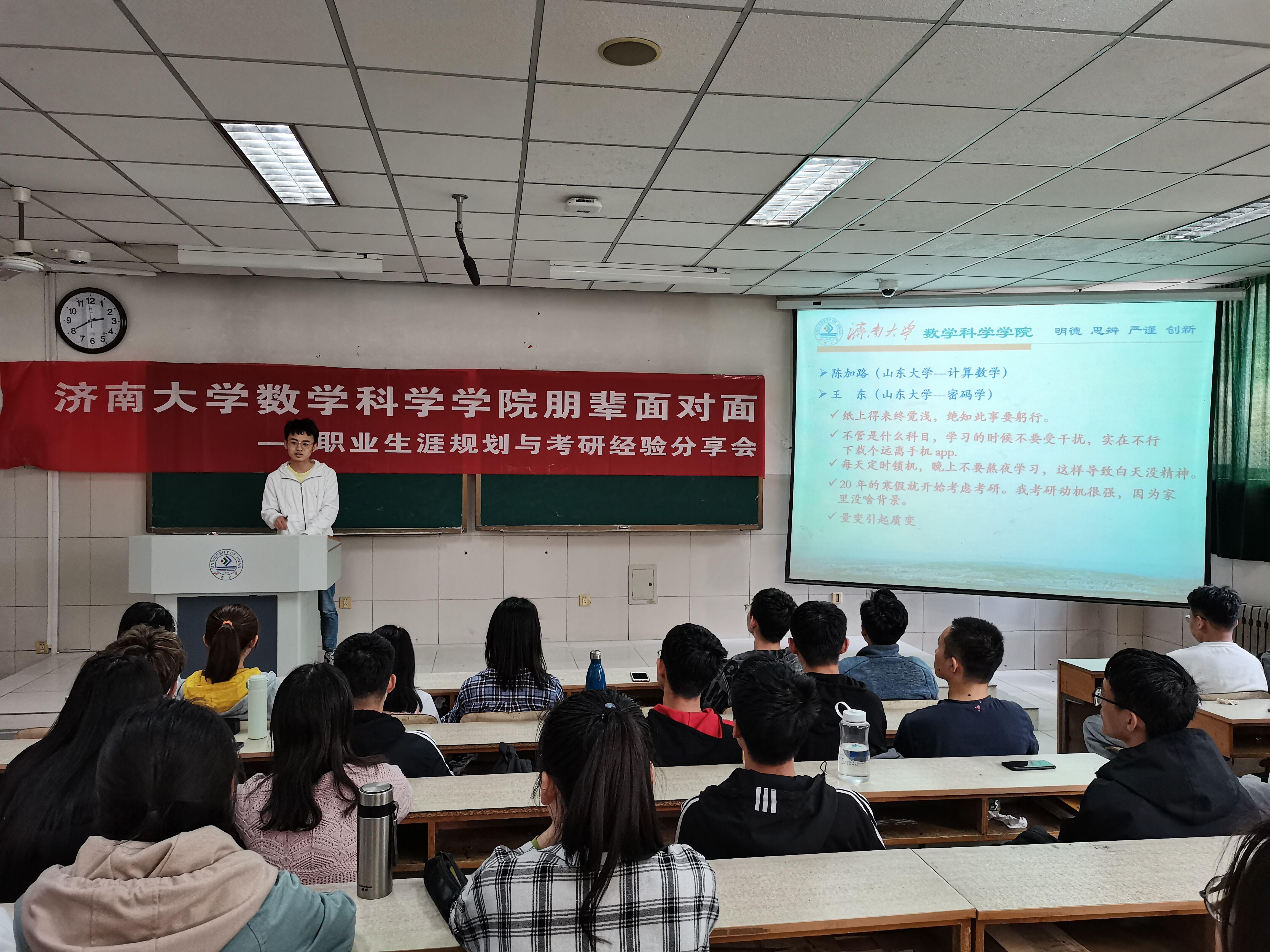 为了进一步提高学生的考研热情,明确考研目标,掌握考研相关技巧,了解更多考研的信息,英国365集团于4月13日下午,在二教102举办了“朋辈面对面”职业生涯规划与考研经验分享会。